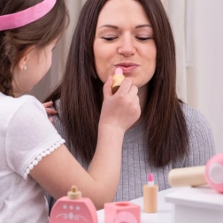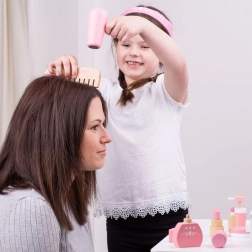 Igra uloga vizažistice ili frizerke prirodno potiče razgovor, suradnju i pripovijedanje priča. Odličan izbor za zajedničku igru djece s prijateljima i roditeljima.