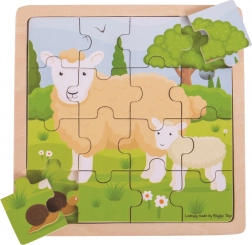 Drvene puzzle u okviru ovčica s janjetom BIGJIGS TOYS, 18 dijelova