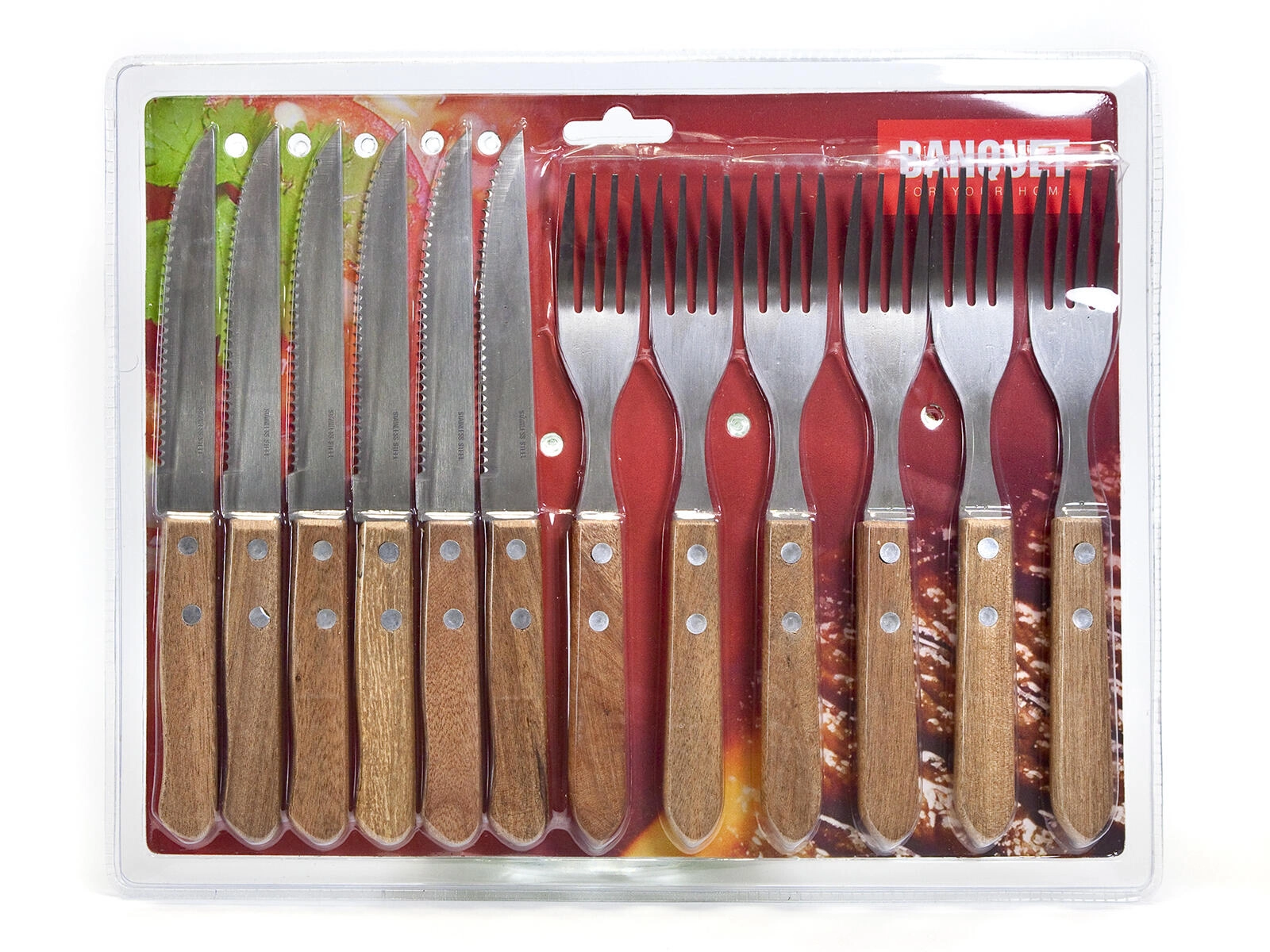 Set od 12 komada (6 noževa i 6 vilica) odličan je izbor za obitelne večere, proslave i ljetna roštiljanja. Izdržljiv nehrđajući čelik jamči dugi vijek trajanja i jednostavno održavanje, pa se možete osloniti na svakodnevnu upotrebu.