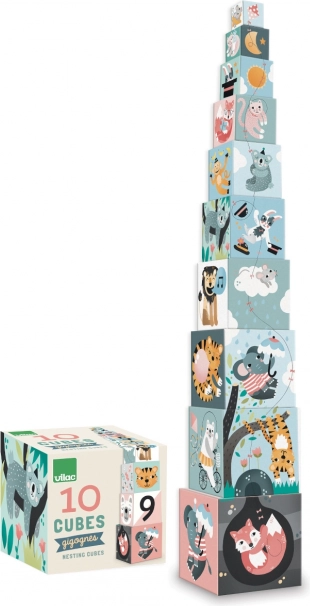 Predstavljamo slagalicu koja kombinira zabavu i učenje u jednom šarenom setu. Ovaj set sadrži deset kartonskih kocaka ukrašenih prekrasnim ilustracijama životinja i brojeva, kreiranim od Michelle Carlslund.