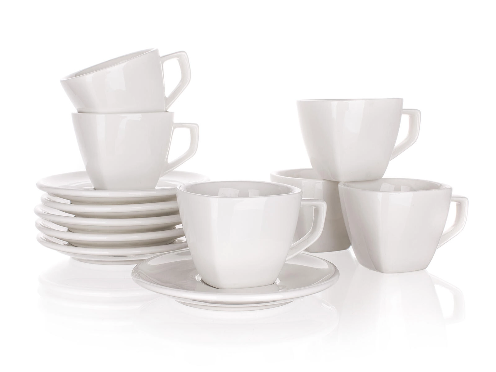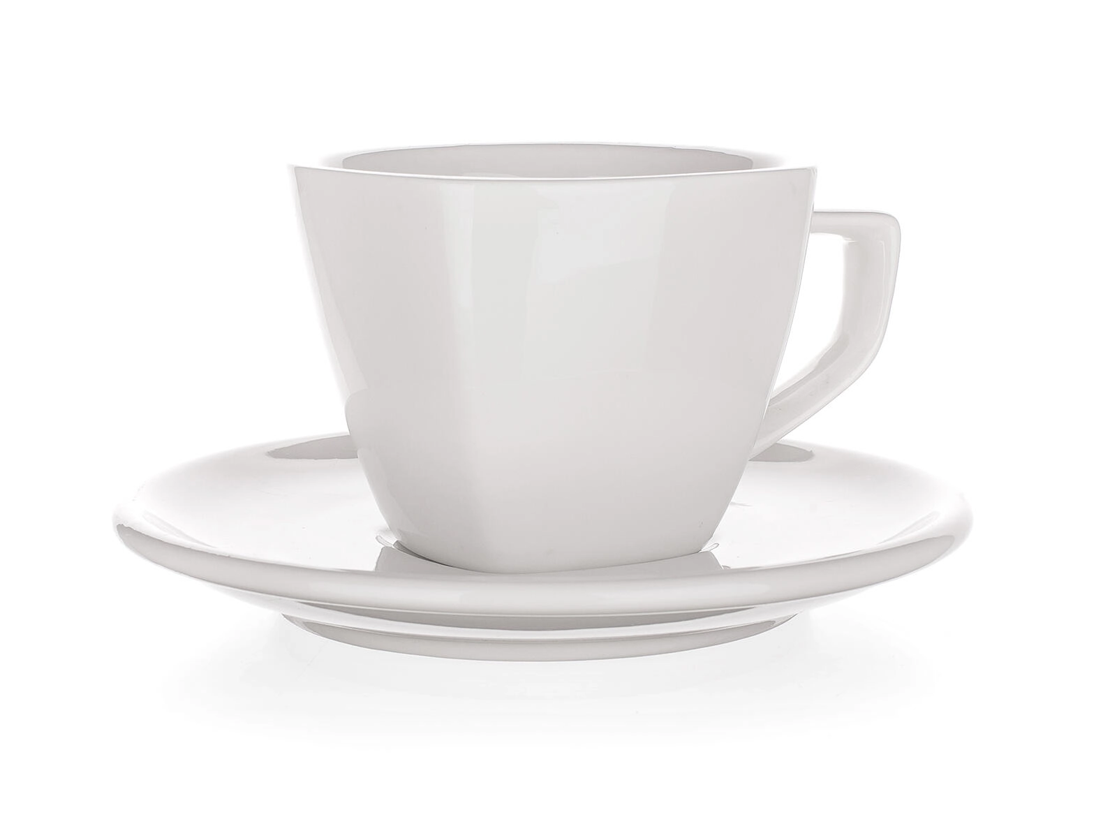 Otkrijte bezvremenski set šalice i tanjurića ALBA zapremnine 250 ml koji spaja čiste linije, bijelu glazuru i profesionalnu kvalitetu. Kvadratni elementi daju moderan izgled te ujedno osiguravaju stabilno i udobno držanje. Idealan za posluživanje kave, čaja i vruće čokolade.