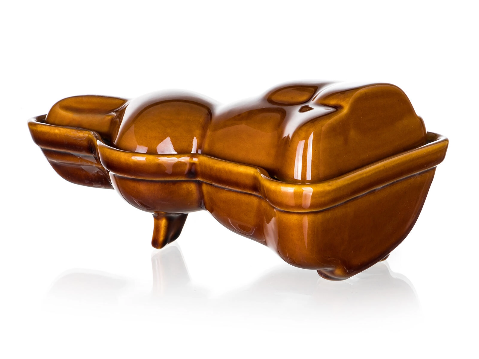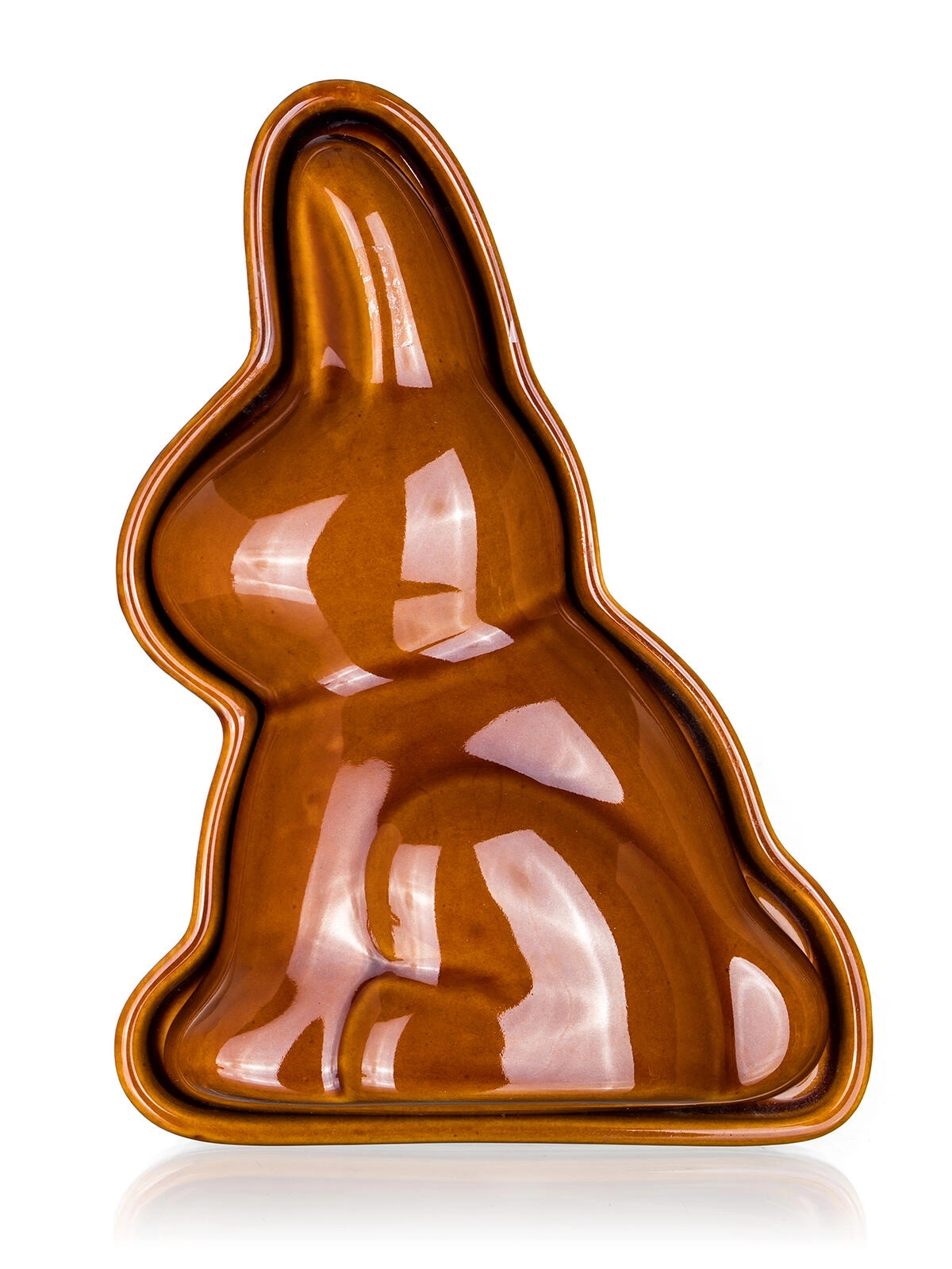 Tradicionalni dvodijelni keramički kalup u obliku zeka s smeđom glazurom idealan je za uskrsno i cjelogodišnje pečenje. Zahvaljujući svojstvima keramike ravnomjerno raspodjeljuje toplinu, postupno je otpušta i pomaže do savršeno pečenih kolača. Pogodno za pećnicu do 250 °C.