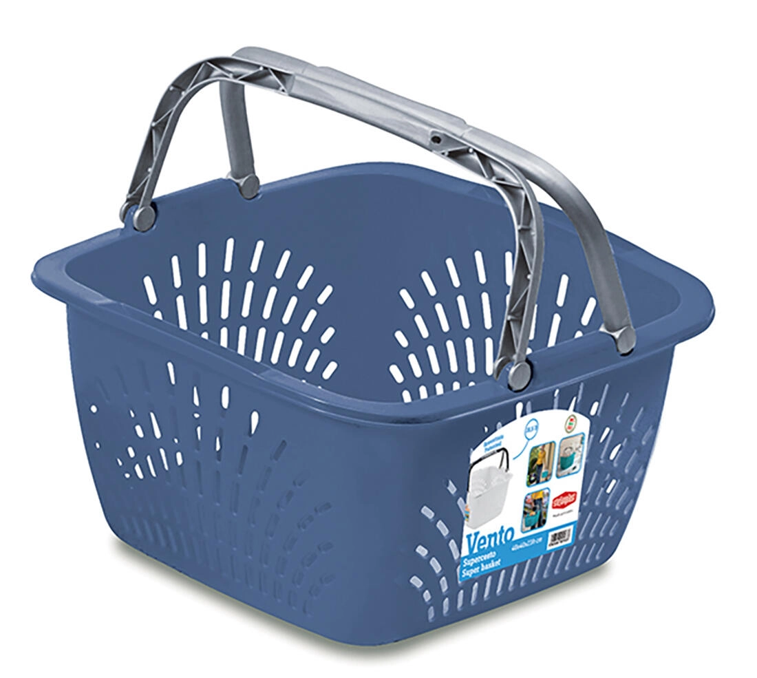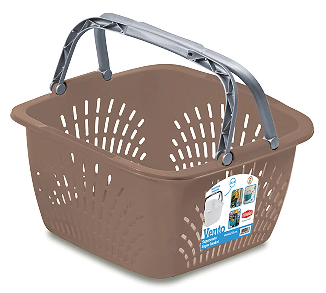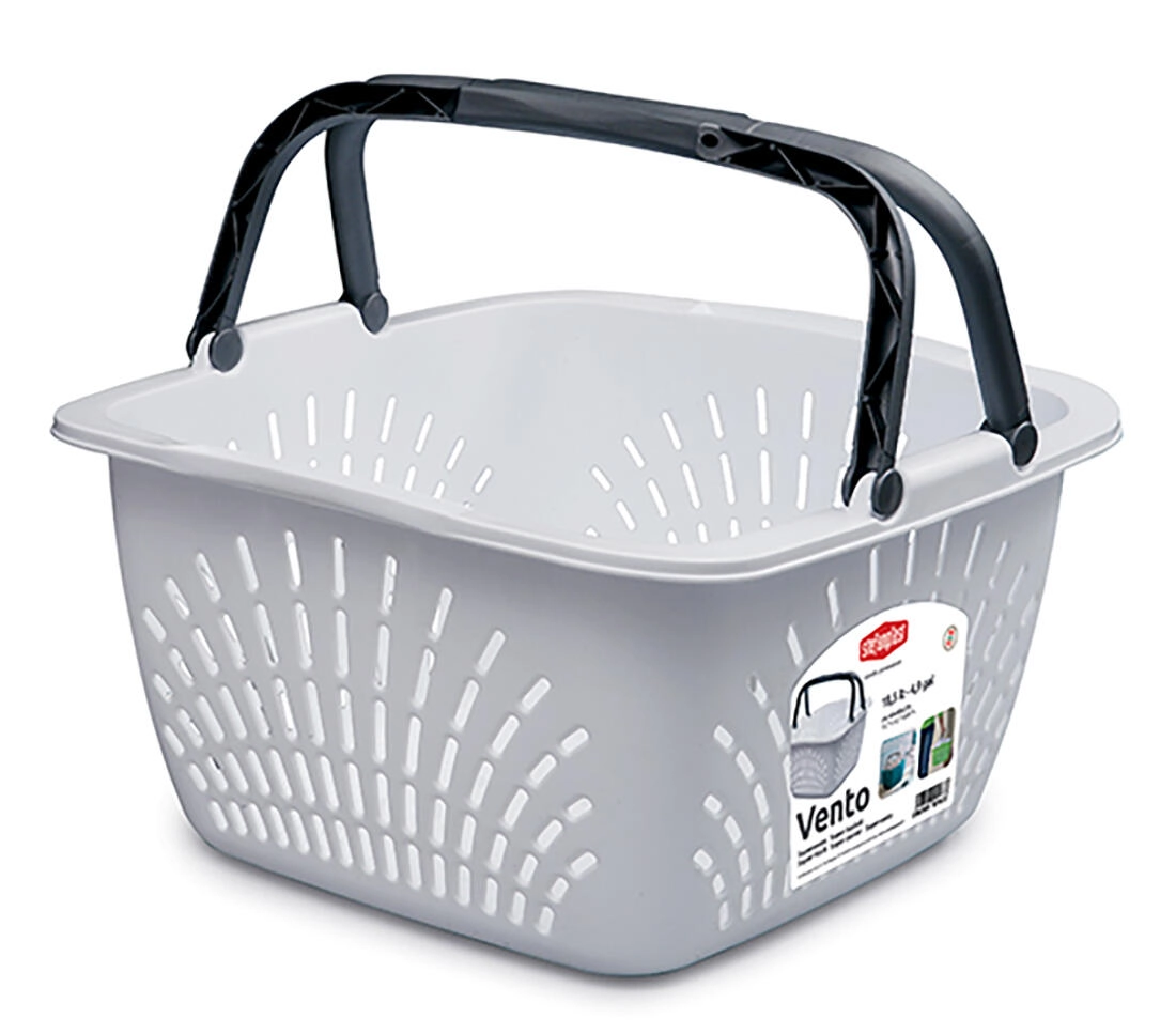Košara za kupovinu Vento idealan je pratitelj za trgovinu, tržnicu i kućanstvo. Zahvaljujući dvjema čvrstim preklopnim ručkama udobno se nosi jednom ili s obje ruke, dok perforirane stranice osiguravaju cirkulaciju zraka i odvod vlage. Laka konstrukcija pritom je dovoljno robusna da sigurno podnese do 15 kg tereta.