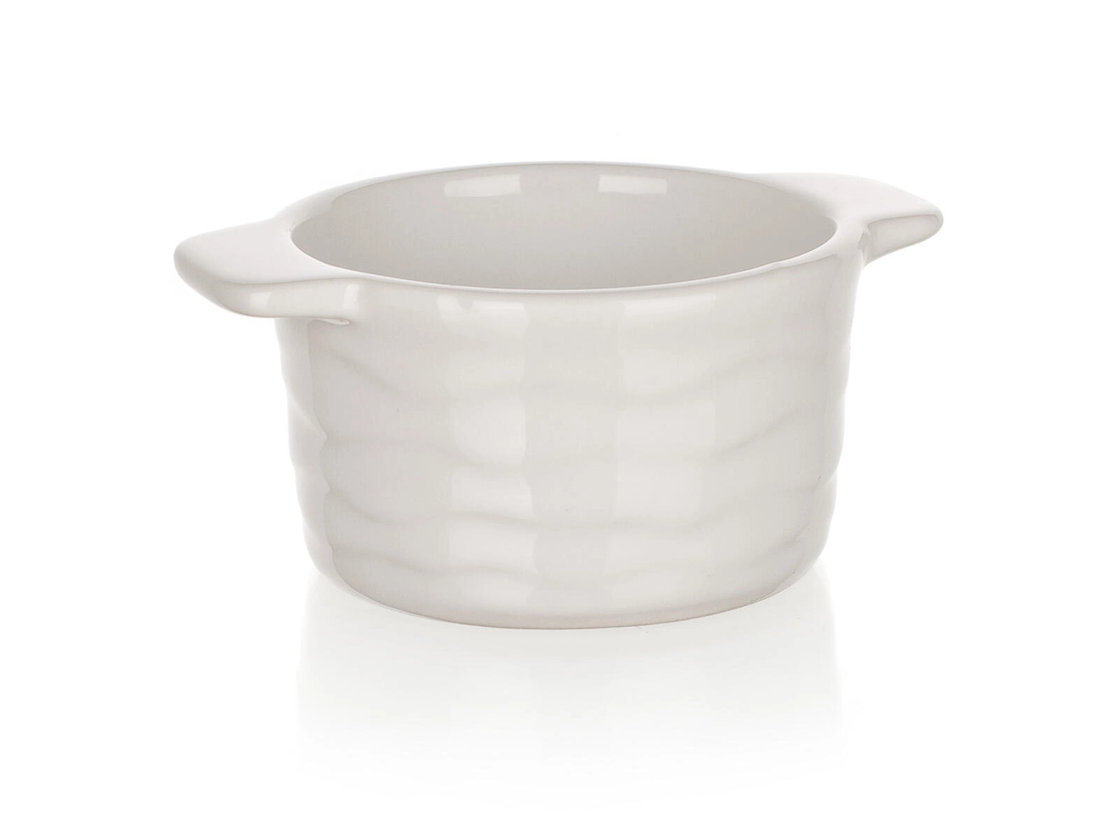 Praktična okrugla zapekač CULINARIA promjera 8,5 cm idealna je za porcije deserata, dipova i priloga. Nudi izdržljivu keramiku, praktične ručke za sigurno prenošenje, sjajnu bijelu glazuru i valoviti reljef za elegantno posluživanje. Prikladna za pećnicu do 240 °C.