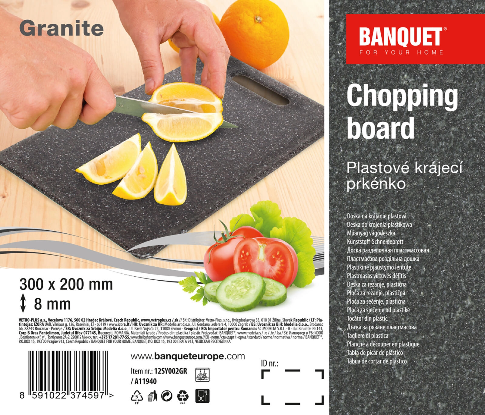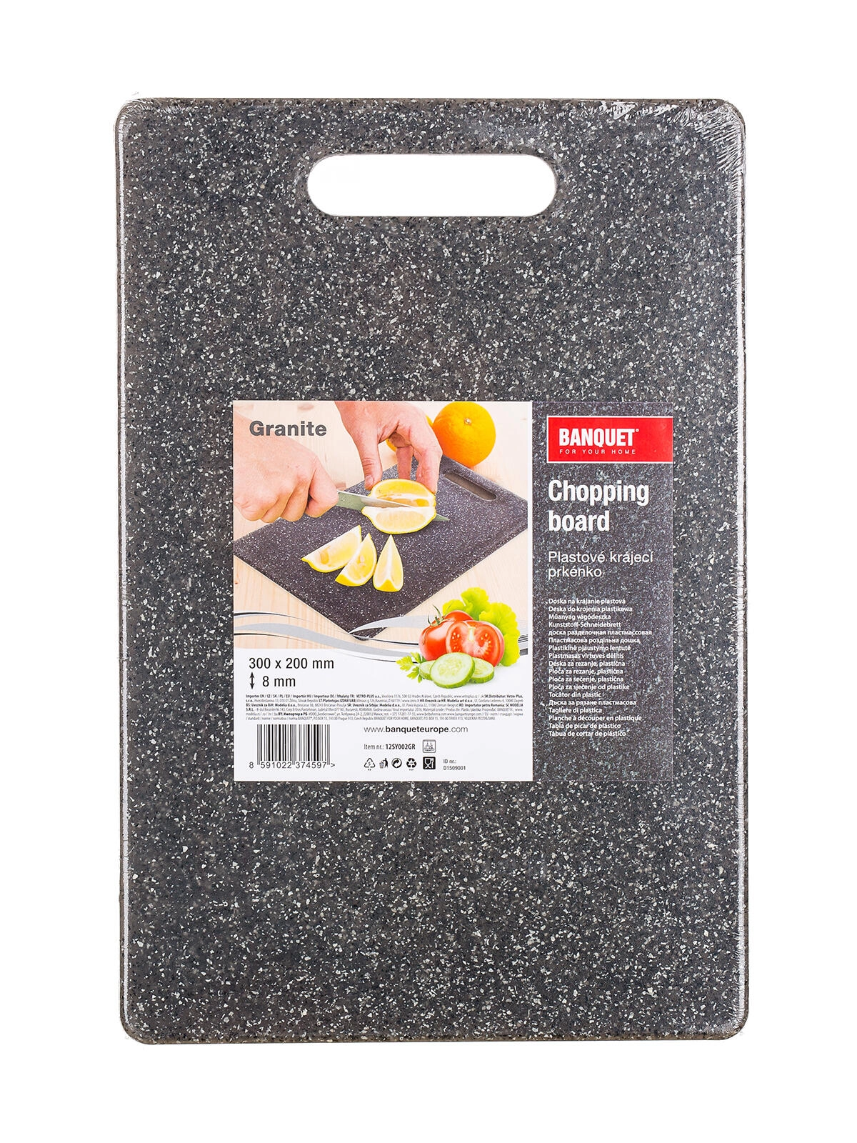 Čvrsta plastika u granitnom izgledu pruža sigurnost pri rezanju i dug vijek trajanja za svakodnevnu upotrebu.