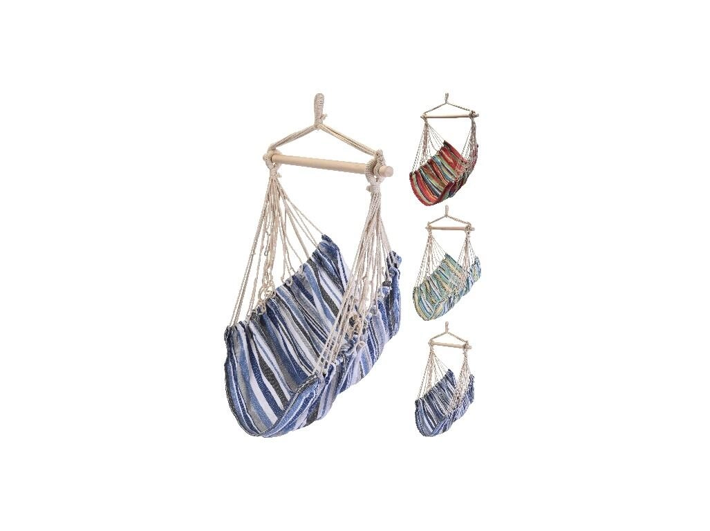 Viseća ljuljačka stolica Poly idealan je izbor za odmor nakon napornog dana. Zahvaljujući čvrstoj konstrukciji s nosivošću od 120 kg i ugodnom tekstilnom sjedalu od mješavine poliestera i pamuka, nudi udobno i stabilno sjedenje. Šarena mješavina lako osvježava interijer i vanjske prostore.