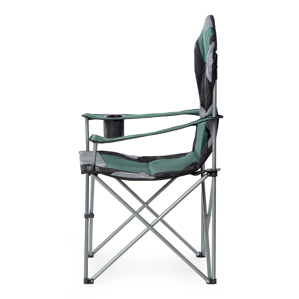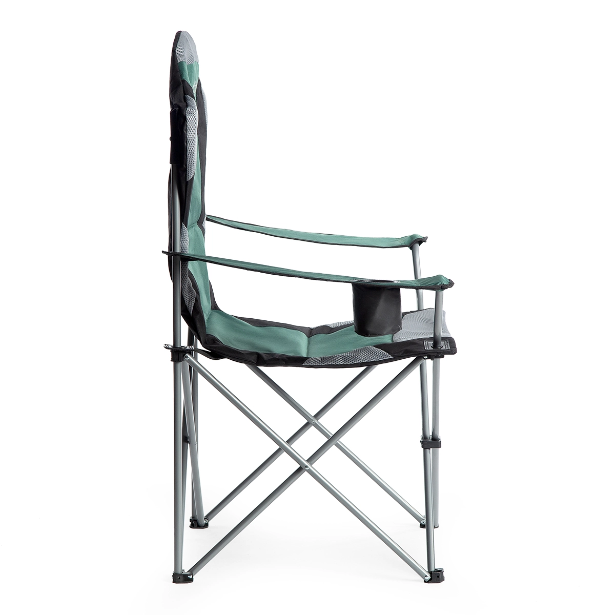 Zahvaljujući jednostavnom sklopivom mehanizmu i priloženoj transportnoj vreći s naramenicom, stolicu lako spakirate i ponesete bilo kamo – od kampa preko ribolova do festivala. Visoki naslon i ergonomski oblik sjedala pružaju potporu koju ćete cijeniti na svakom izletu.