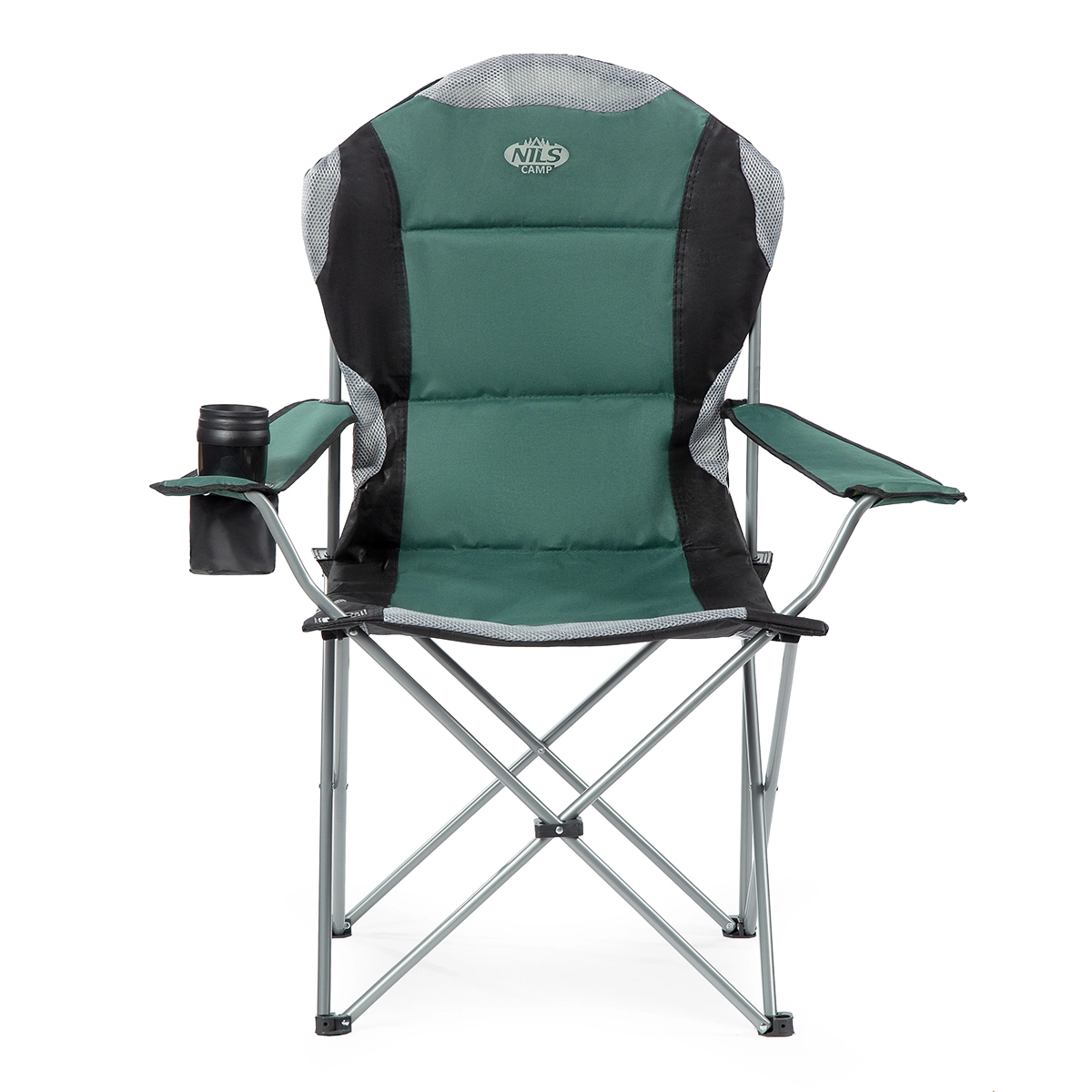 Sklopiva stolica NILS Camp dizajnirana je za maksimalnu udobnost i izdržljivost u prirodi. Robusni čelični profili promjera 16 mm osiguravaju stabilnost, dok dvoslojni, podstavljeni materijal 600D Oxford s prozračnim panelima brine o udobnosti i pri duljem sjedenju. Ne nedostaju protuklizne nožice i integrirani držač za napitke kako bi vam osvježenje uvijek bilo pri ruci.