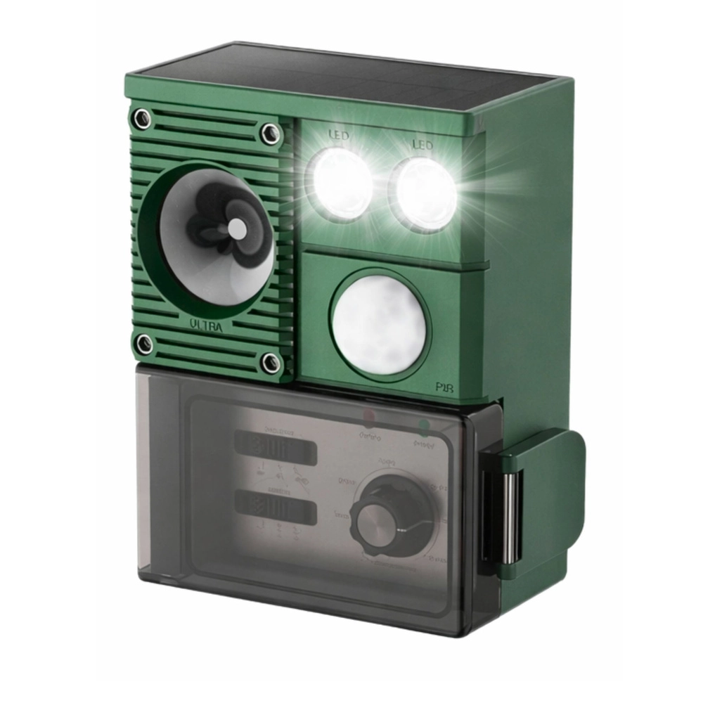 Ultrazvučni i akustični signali, dopunjeni snažnim LED diodama, učinkovito pomažu odvratiti neželjene životinje bez fizičke štete.