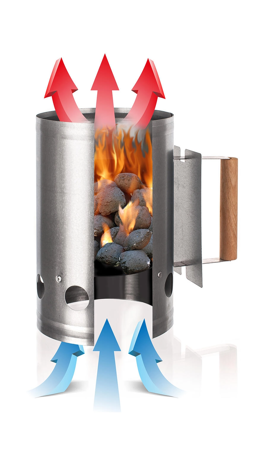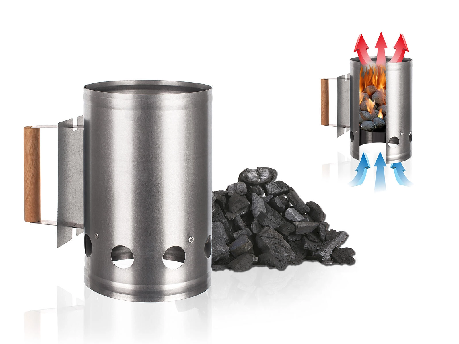 Više nema dugog čekanja na užarene ugljenčiće. Ovaj pocinčani palič promjera 16,5 cm i visine 28 cm koristi dimnjački efekt za brzo izgaranje i užarivanje ugljena i briketa. Zahvaljujući promišljenim ventilacijskim otvorima zrak struji ujednačeno, što ubrzava paljenje i smanjuje potrošnju potpala.