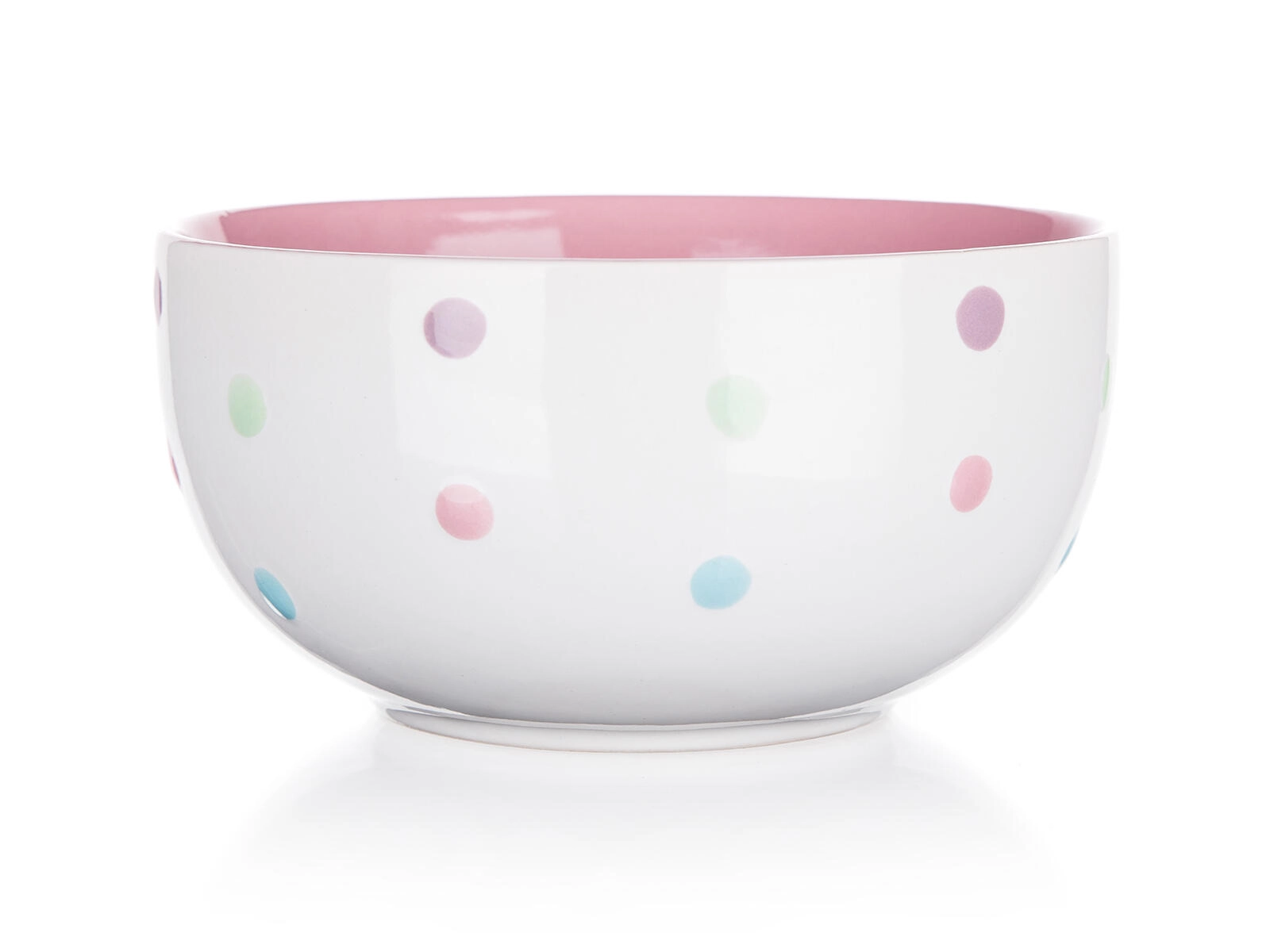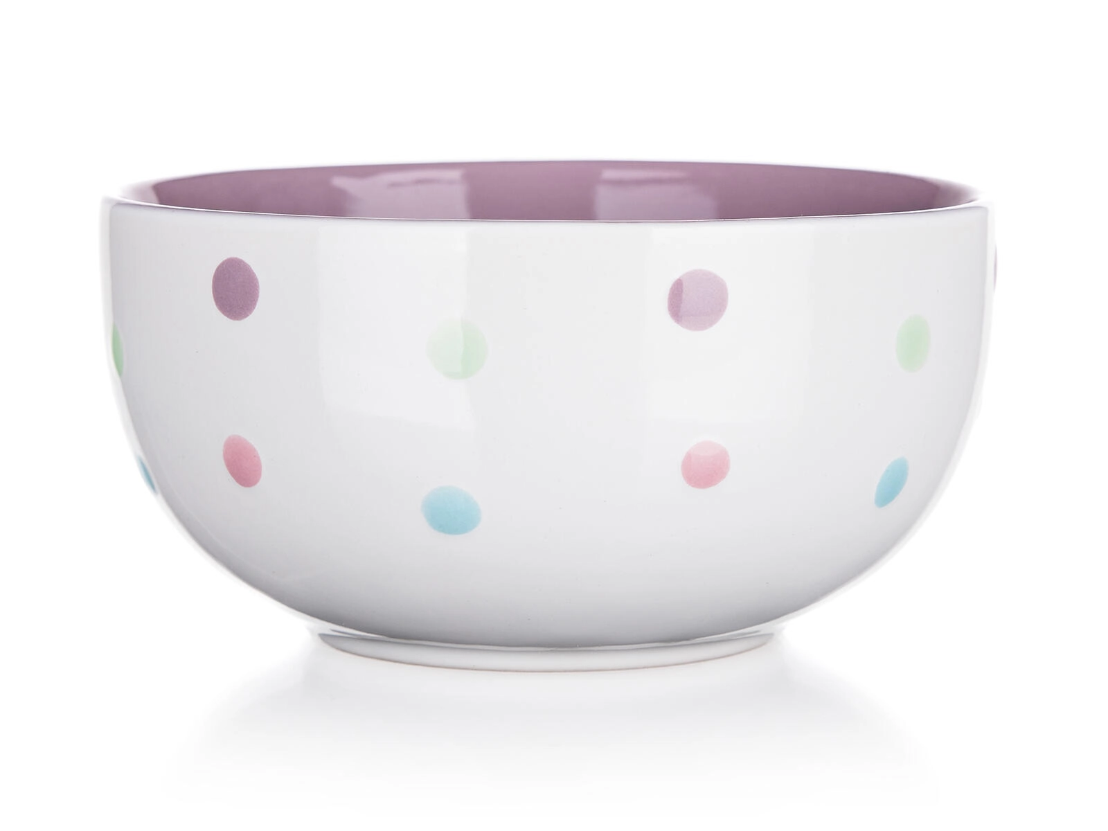 Ova praktična zdjelica zapremnine 520 ml ističe se bijelom osnovom s pastelnim točkicama i obojenom unutrašnjošću (ružičasta, ljubičasta, plava, zelena). Zahvaljujući kvalitetnoj keramici prikladna je za posluživanje vrućih i hladnih jela, a njezina glatka glazura lako se održava.