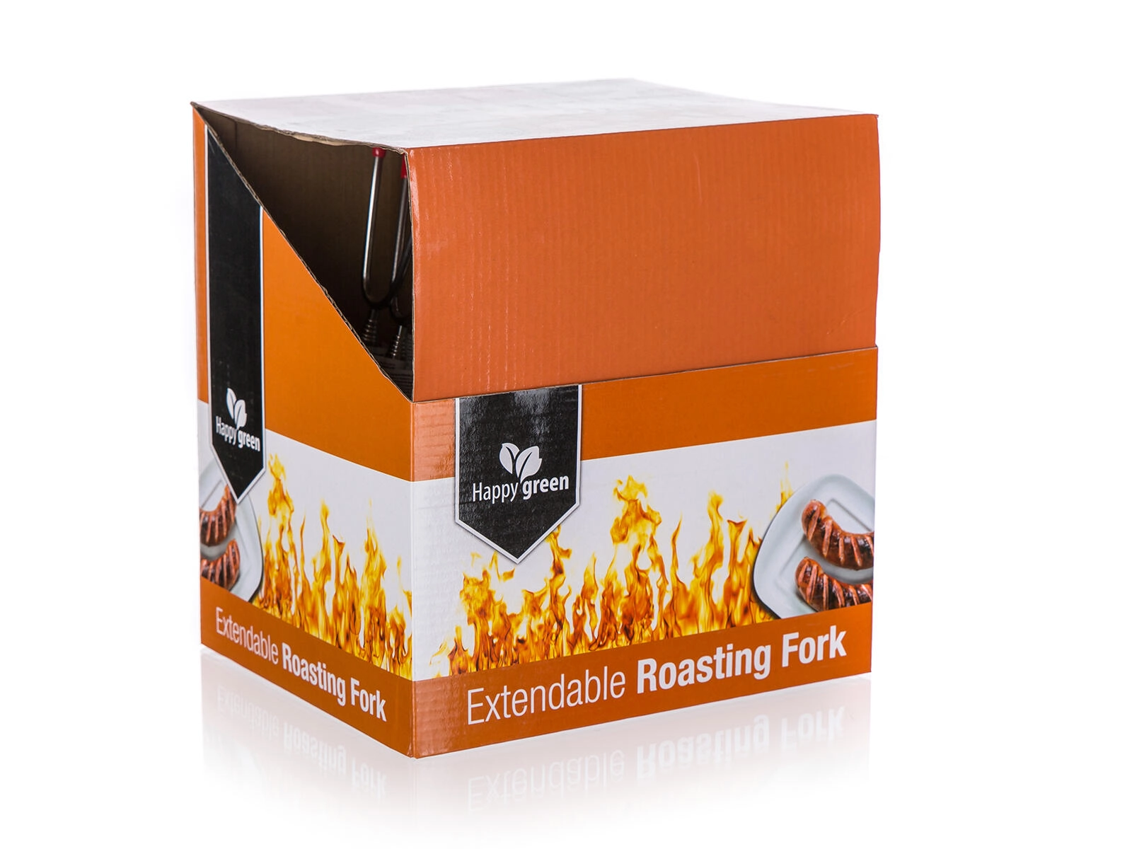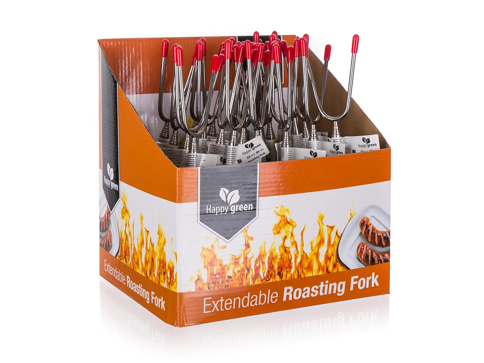 Praktična teleskopska vilica za pečenje s podesivom dužinom 24–86 cm od nehrđajućeg čelika i udobnom PVC drškom. Idealna za pečenje hrenovki, kobasica i povrća nad vatrom ili roštiljem, s dva čvrsta zupca za sigurno nabadanje.