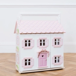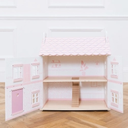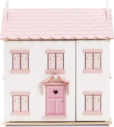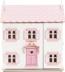 Luksuzna trospratna kuća u romantičnoj ružičasto-bijeloj izvedbi oduševljava sjajnim valovitim krovom, srcima i raznolikim interijernim dekoracijama u svakoj sobi. Otvorivi prozori i kapci pozivaju djecu u svijet priča, dok stabilna drvena konstrukcija jamči dug vijek trajanja. Kućica se isporučuje bez opreme, pa je djeca mogu dovršiti namještajem i figuricama prema vlastitom stilu.