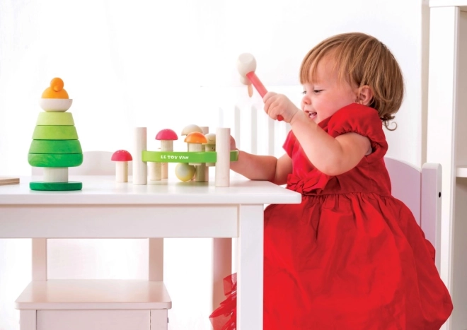 Ova lijepo dizajnirana drvena igra za zabijanje donosi radost i učenje u dječju igru. Jamči sate zabave tijekom kojih djeca mogu vježbati svoje vještine: