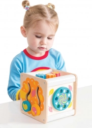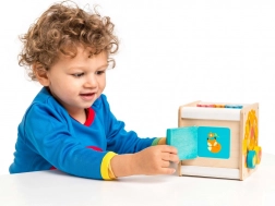 Stimulira finu motoriku i razvija kognitivne vještine djece putem interaktivnih elemenata.