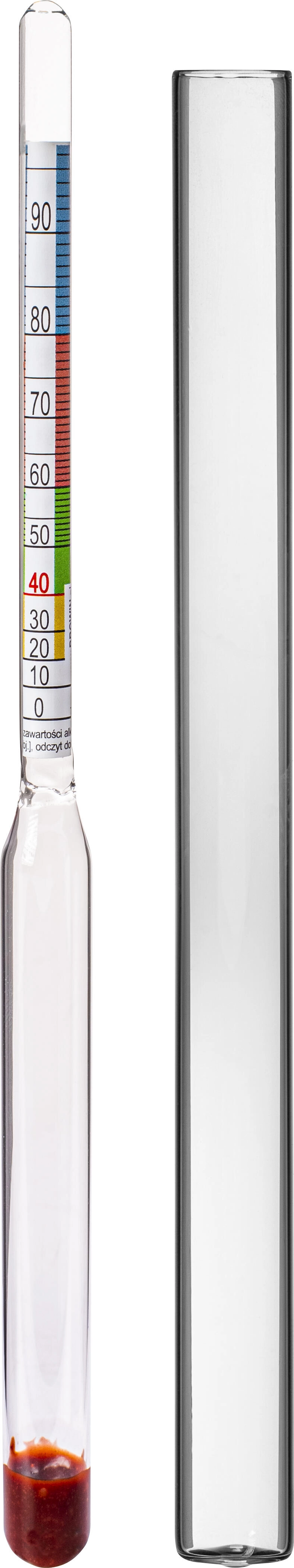 Pouzdan alkoholmetar namijenjen mjerenju volumenskog udjela alkohola u rasponu 0–95 %. Zahvaljujući jasno čitljivoj skali na plovku pruža trenutne rezultate bez potrebe za dodatnim konverzijama. Dovoljno ga je uroniti u ispitivanu tekućinu i očitati vrijednost na razini površine.