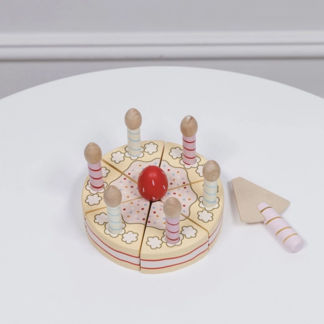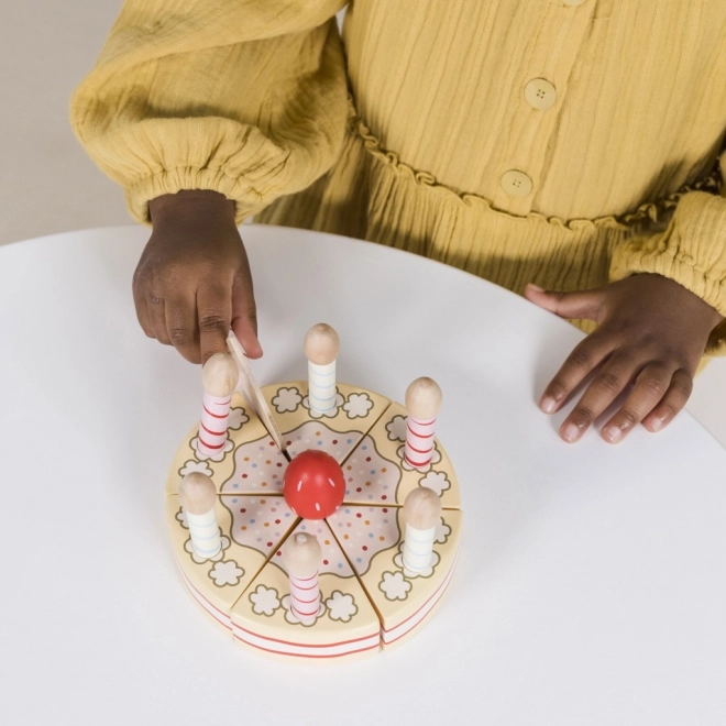 Proslava može početi! Ovaj drveni vanilijin rođendanski tort od LE TOY VAN ima 6 rezanih komada spojenih čičak-trakom i 6 svijeća za realističnu rođendansku igru. Izrađen od FSC drva i obojan netoksičnim bojama na bazi vode, potiče finu motoriku, spretnost i socijalne vještine. Idealna igračka za djecu od 2 godine.