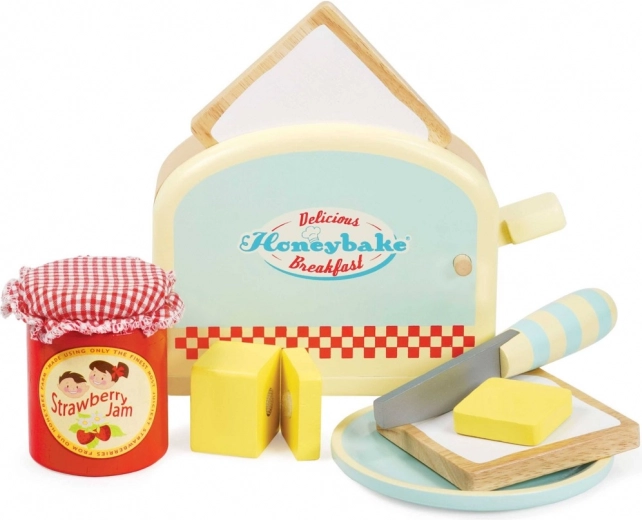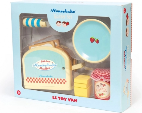 Drveni set Honeybake od LE TOY VAN pretvara dječji kutak u ugodnu kuhinjicu. Djeca će obožavati realistični toster s oprugom iz kojeg nakon pritiska iskaču dvije kriške “tosta”. Maslac sa spojem na čičak uči pravilnom hvatu i radu s nožićem, dok staklenka jagodnog džema i tanjurić upotpunjuju svaku razigranu jutarnju rutinu.