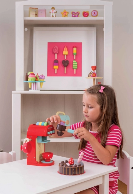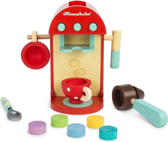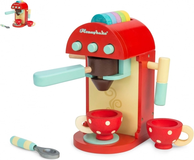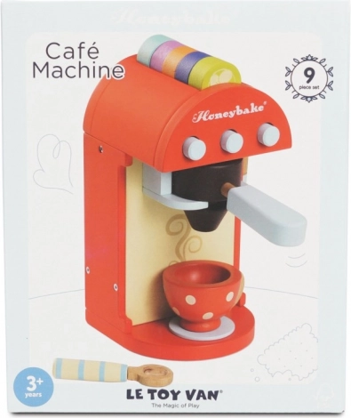 Stilski dječji aparat za kavu iz kolekcije Honeybake brenda LE TOY VAN razveselit će male bariste. Nudi realističnu igru kafića s drvenim kapsulama, ručicom, spenjačem za mlijeko i slatkom šalicom. Izrađen od održivog FSC drva, ručno dorađen netoksičnim bojama na bazi vode za sigurnu i kreativnu zabavu.