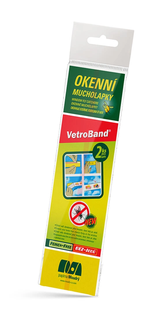 Održavajte čist i higijenski prostor u domu s prozorskom trakom za muhe Vetro Band. Posebno razvijen mamac u kombinaciji s ljepljivom površinom jamči učinkovit ulov kućne muhe (Musca domestica) i vinske mušice (Drosophila melanogaster) izravno na prozoru, gdje se insekti najčešće zadržavaju.