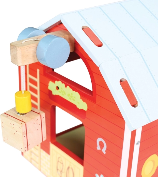 Velika se vrata lako otvaraju i zatvaraju, a kroz prozore se može zaviriti unutra. Ilustrirani detalji iznutra i izvana uvlače djecu u svijet farme.