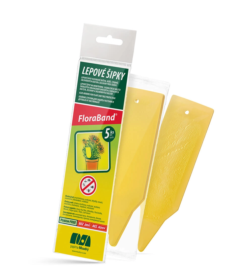 Praktične ljepljive strelice Flora Band učinkovito štite sobne i vrtne biljke od štetnika. Zahvaljujući upadljivo žutoj boji štetnike pouzdano privlače, a ljepljiva površina ih brzo zadržava. Pakiranje sadrži 5 kom strelica – 3 obostrano ljepljive i 2 jednostrano ljepljive – za lako postavljanje izravno u supstrat.