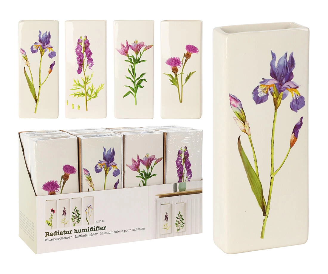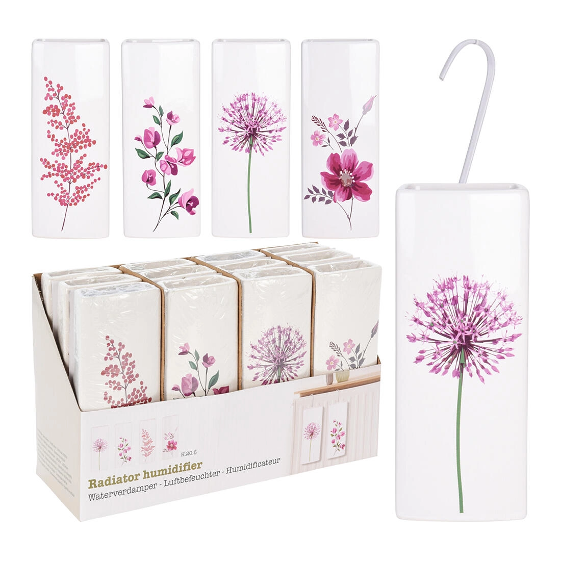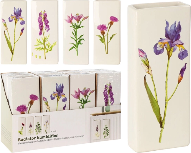 Elegantan keramički isparivač za radijator s motivom proljetnog cvijeća poboljšava klimu u vašem domu. Dovoljno ga je napuniti vodom i objesiti – prirodno ovlaživanje zraka bez električne energije, tih rad i jednostavno održavanje. Bijela sjajna glazura i decentne cvjetne dekoracije uklapaju se u svaki interijer.