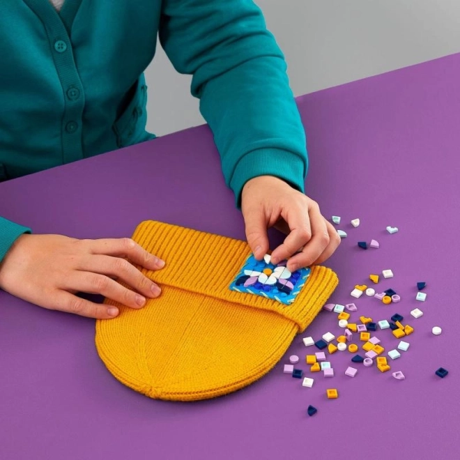 LEGO DOTS Ukrasna našivka izvrstan je dodatak za sve male dizajnere i ljubitelje „uradi sam” projekata. Fleksibilna podloga 6×6 pričvršćuje se izravno na tkaninu, a zahvaljujući bogatom setu raznobojnih pločica djeca brzo stvaraju originalan izgled torbi, kapa, hudica ili pernica. U pakiranju se nalaze i ideje za inspiraciju te jednostavne upute.