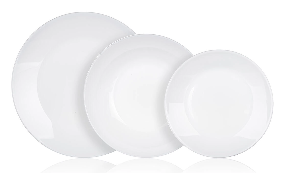 Set tanjura ZELIE dizajniran je za moderne domove koji traže praktičnost, izdržljivost i čist dizajn. Kvalitetno staklo u elegantnoj bijeloj boji lako se uklapa s bilo kojim stolnim servisom te daje postavljenom stolu svjež i uredan izgled.