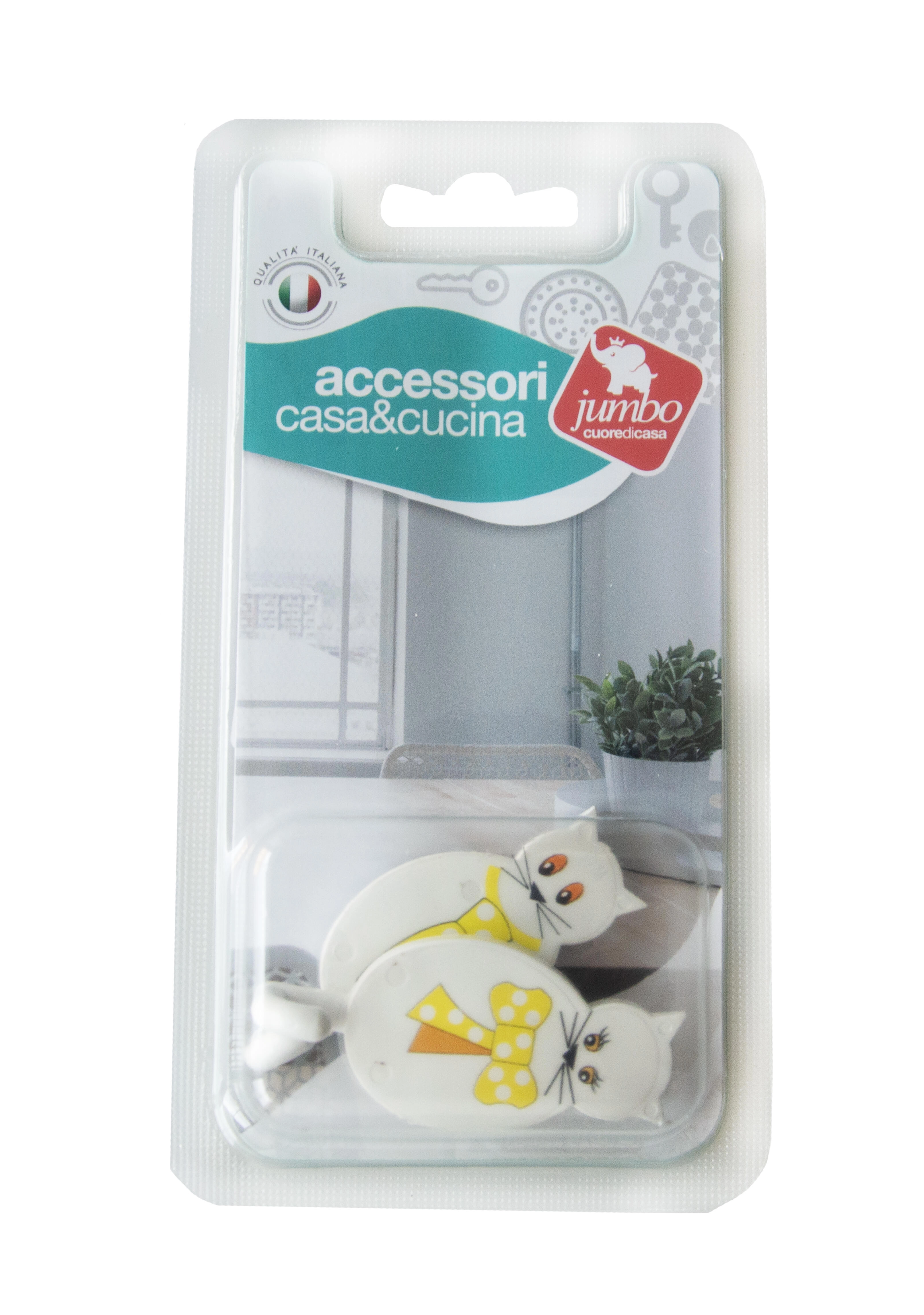U pakiranju se nalaze 2 kom plastičnih kukica u miksu dekoracija – psić, mačka s kravatom, mačka s mašnom, bubamara i panda. Odlično pristaju u kupaonicu, na pločice, u dječju sobu ili predsoblje za lagane tekstile i dodatke.