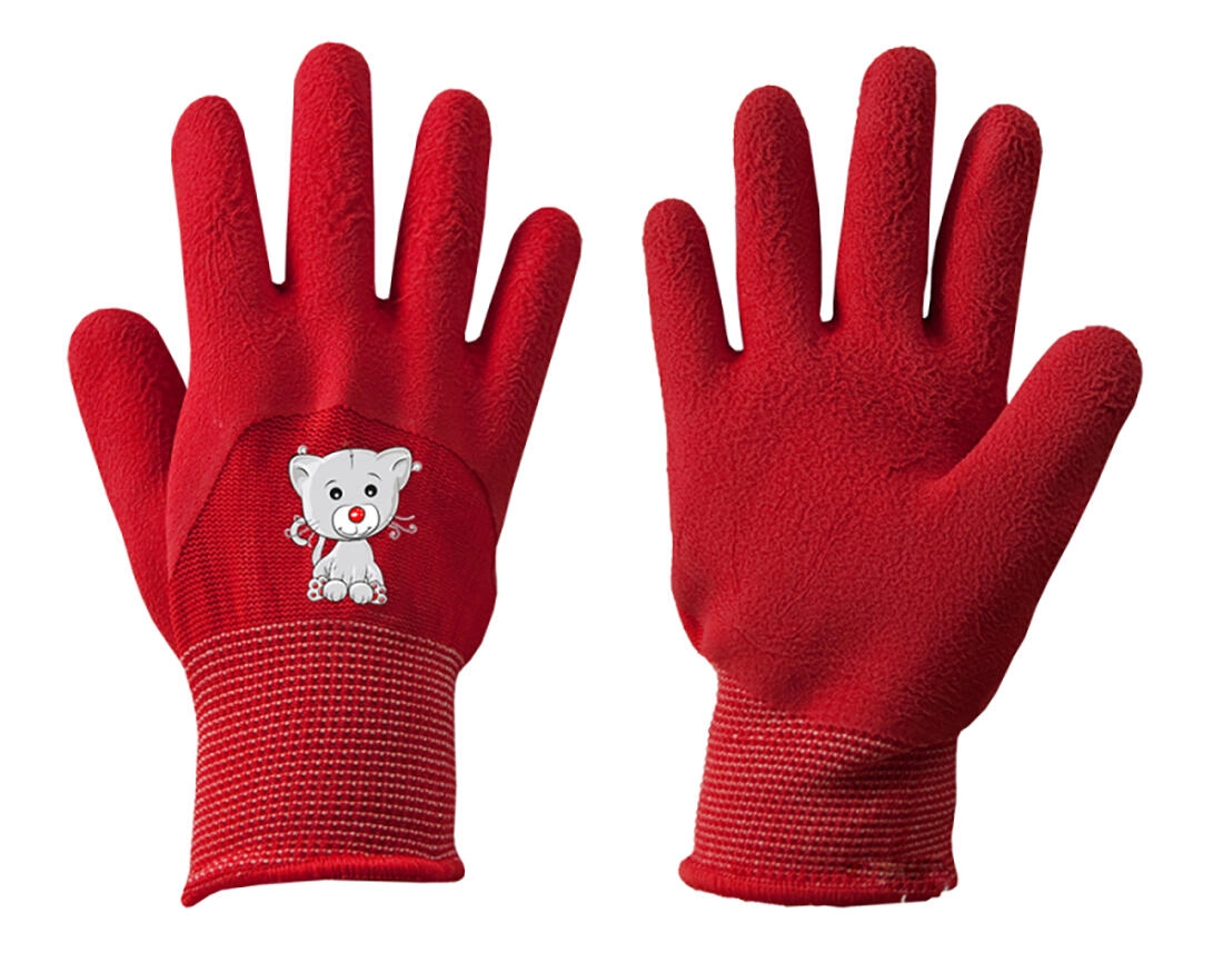 Praktične dječje rukavice KITTY u veličini 5 od izdržljivog poliestera s površinom od pjenastog lateksa osiguravaju pouzdan hvat i zaštitu od posjekotina i cijepanja. Idealne za sitne radove u vrtu, hobije i kućne pomoćne poslove.