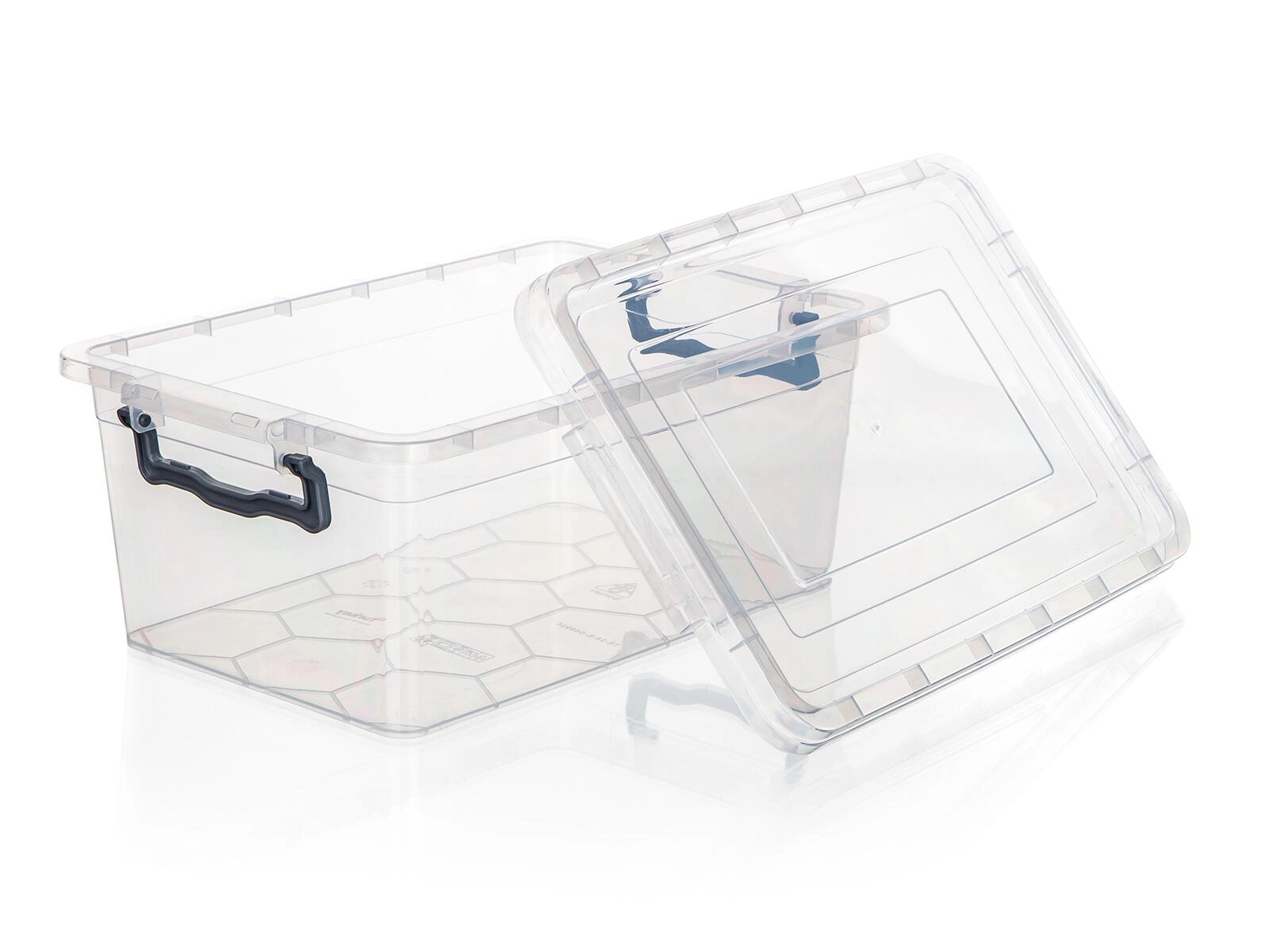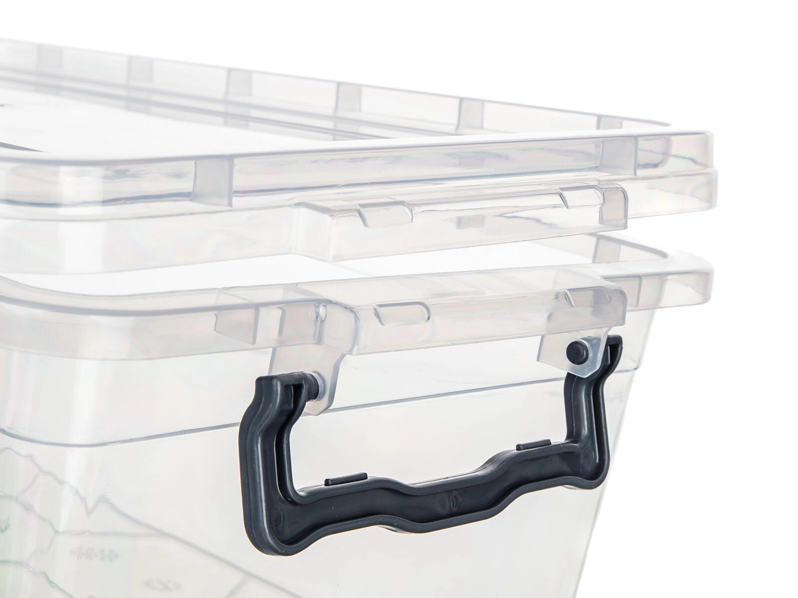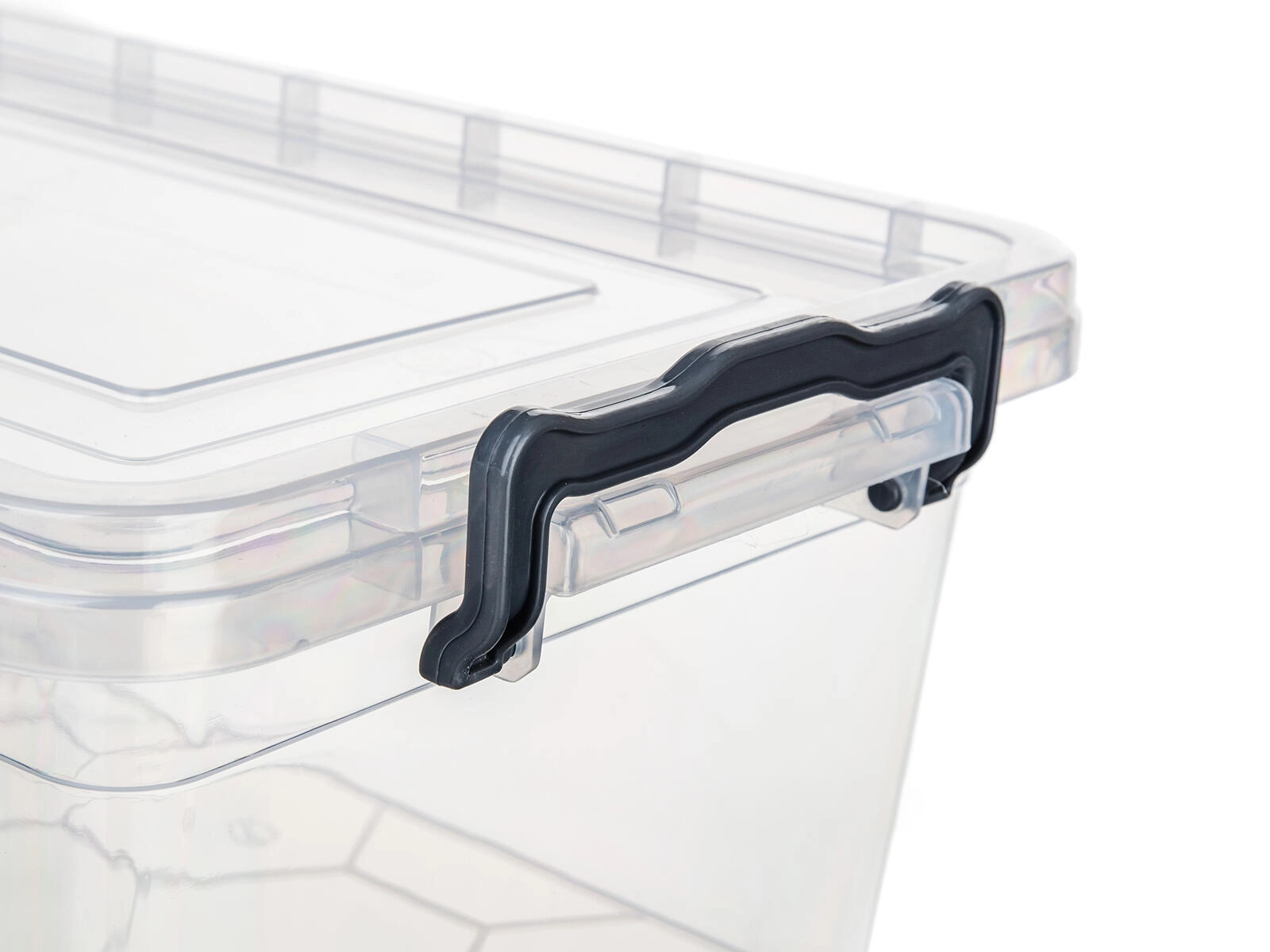 Dvije bočne kopče pouzdano fiksiraju poklopac, štite sadržaj od prašine i olakšavaju prenošenje spremnika.