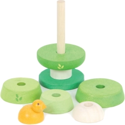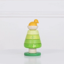 Otkrijte kvalitetnu slagalicu u obliku drvca sa slatkom ptičicom na vrhu. Dijelovi u raznim nijansama zelene potiču djecu na razlikovanje boja i oblika, dok stabilna baza osigurava sigurnu igru. Zahvaljujući elastičnoj šipci, slaganje je udobno i nježno čak i za najmanje ručice.