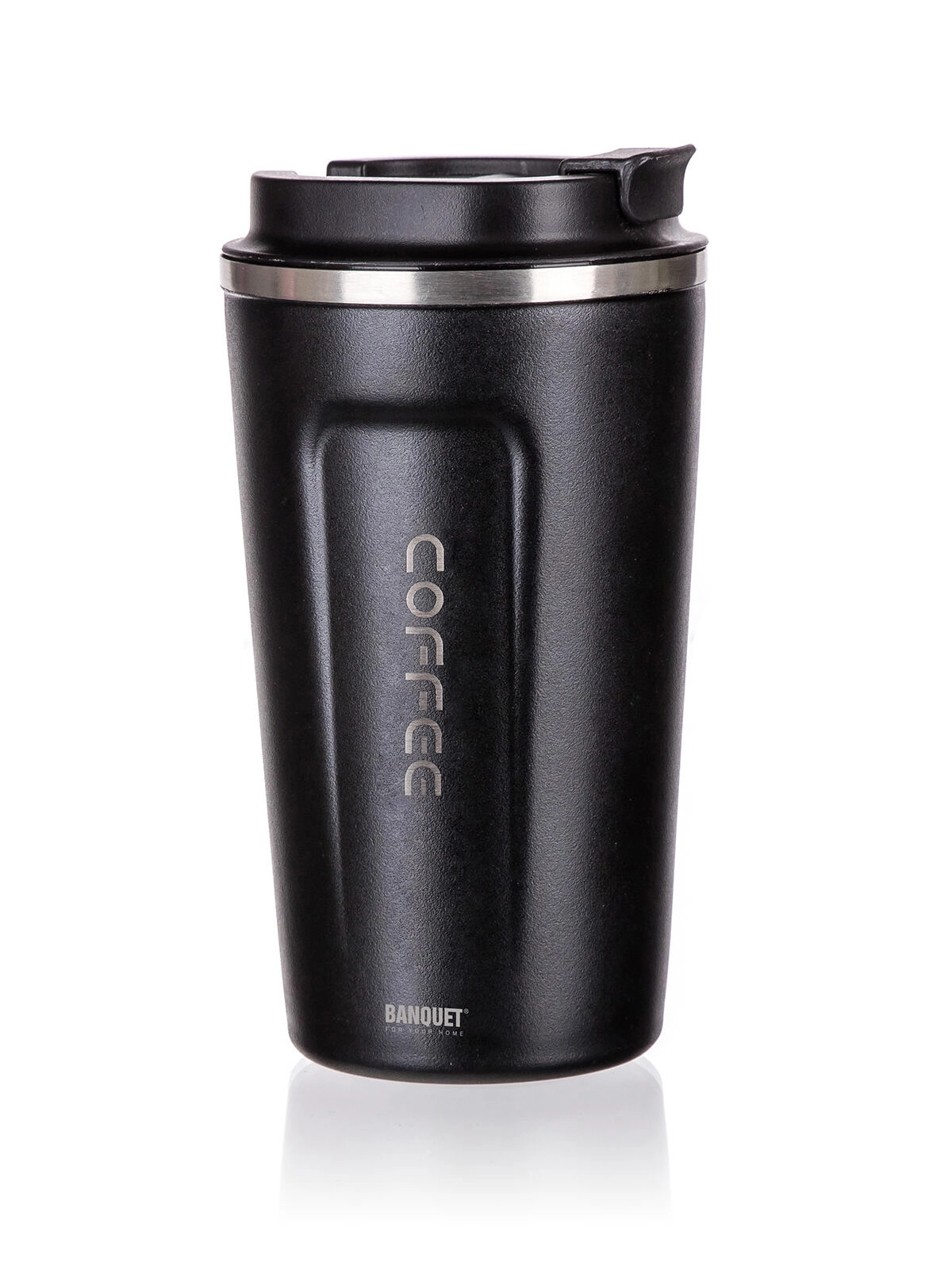 Lagan i praktičan plastični poklopac olakšava svakodnevnu upotrebu. Poklopac nije potpuno nepropustan – preporučujemo stoga šalicu čuvati u uspravnom položaju. Crna izvedba pristaje u automobil, ured i ruksak, a izdržljivi materijali (nehrđajući čelik, plastika, silikon) osiguravaju dug vijek trajanja.