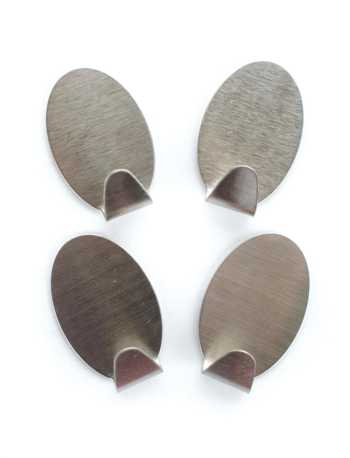 Praktične samoljepljive kukice od nehrđajućeg čelika s ovalnim dizajnom za brzo i elegantno vješanje kuhinjskih krpa, ručnika i sitnih predmeta. Jednostavna instalacija bez bušenja, izdržljiv materijal od nehrđajućeg čelika i kompaktna visina 5 cm čine ih idealnim dodatkom za kuhinju, kupaonicu i hodnik. Pakiranje sadrži 4 kom.