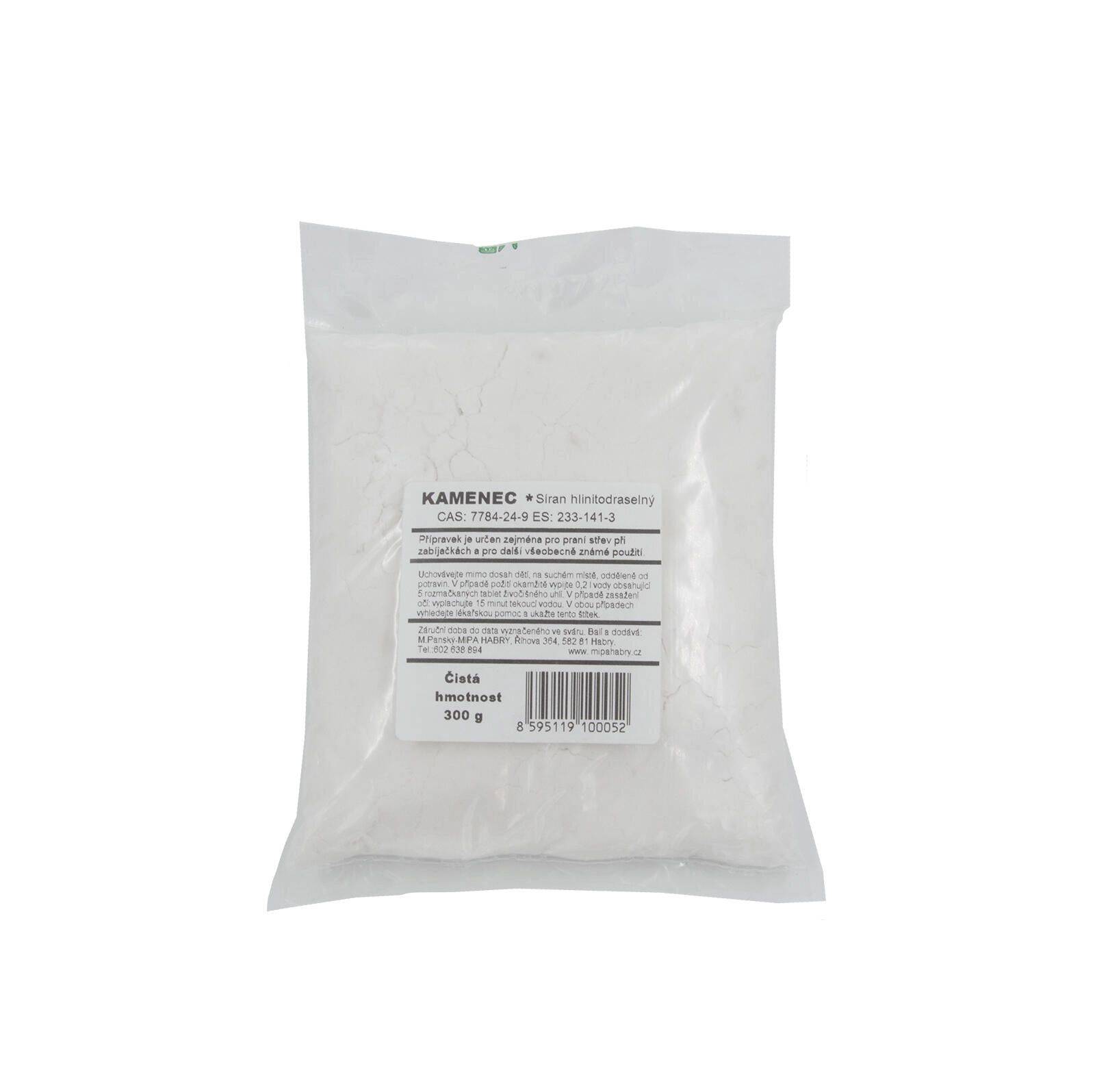 Univerzalni amonijev alum mase 300 g za kućnu upotrebu i obrtničke radove. Idealan za pranje crijeva pri kućnoj svinjokolji i za štavljenje koža, gdje pomaže pri čišćenju, dezodoraciji i konzerviranju materijala.