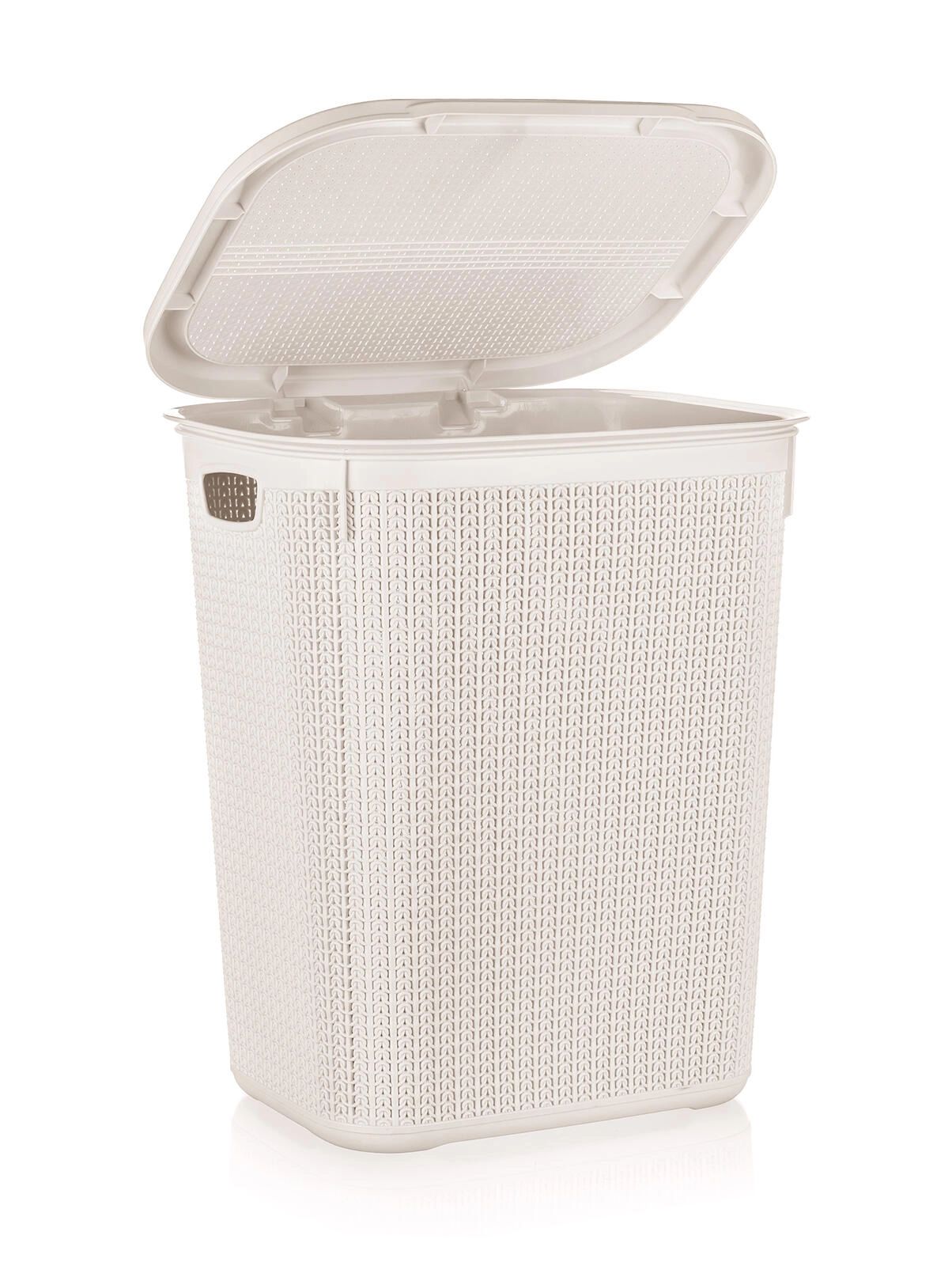 Praktičan koš za rublje zapremine 50 l u ratan izgledu idealan je za svako kućanstvo. Zahvaljujući poklopcu skriva sadržaj i održava kupaonicu ili praonicu urednom. Otporna plastika osigurava dug vijek trajanja, jednostavno održavanje i nisku težinu. Elegantna krem boja uklapa se u većinu interijera.
