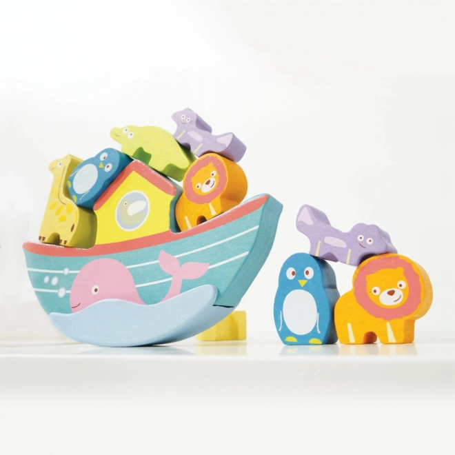 Ova prekrasno obojana balansna arka sadrži deset ručno oslikanih životinja koje djeca postavljaju na brod, pojačavajući tako svoju koordinaciju ruka-oko i spretnost. Set ovih životinja i brodića izrađen je od održivog FSC drva i obojan netoksičnim bojama na bazi vode.