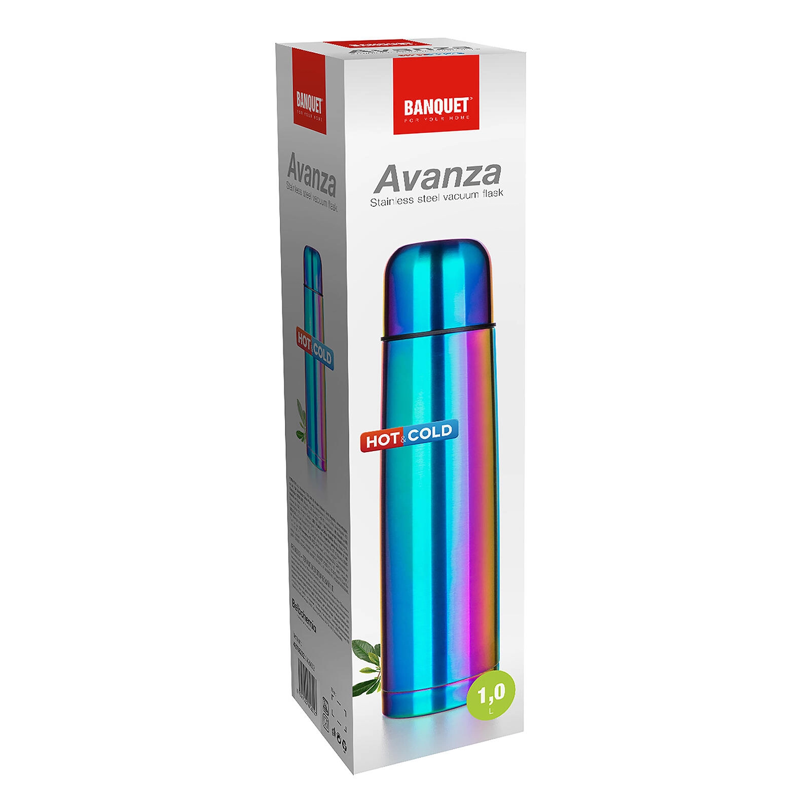 Termos boca AVANZA zapremnine 1 litra idealan je pratitelj za posao, školu i izlete. Zahvaljujući vakuumskoj dvostrukoj izolaciji i potpuno metalnoj izvedbi (unutarnja i vanjska površina od nehrđajućeg čelika 201) pouzdano zadržava temperaturu napitka dugo vremena. Mat završna obrada duginih boja daje boci upečatljiv i elegantan izgled.