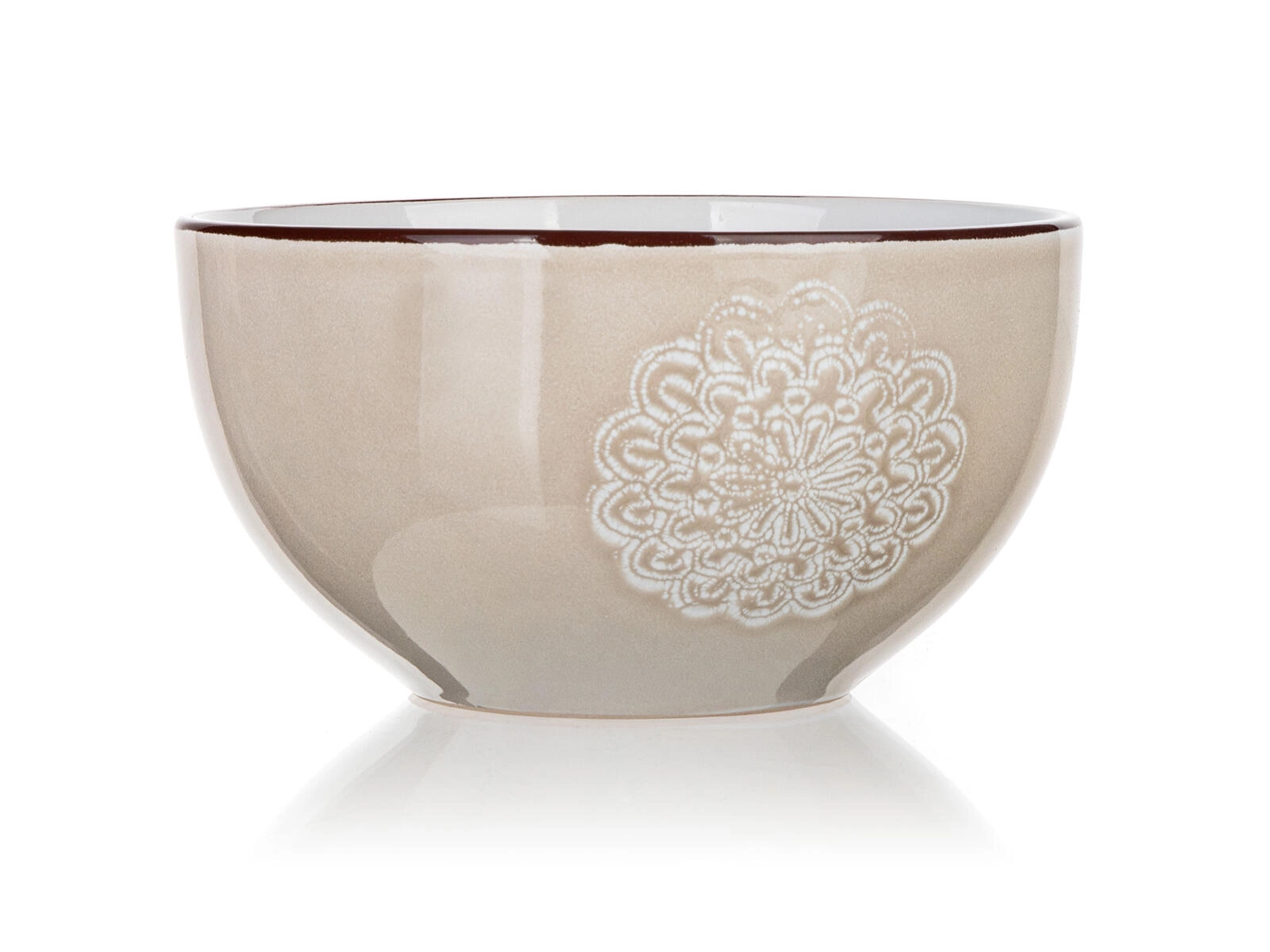 Otkrijte bezvremensku eleganciju sa zdjelicom SHAPE koja spaja praktičnu uporabnost s dekorativnim dizajnom. Krem nijansa s nježnim mandala/čipkastim uzorkom i tamnijim rubom donosi vašem postavu stola harmoniju i stil. Zdjelica je idealna za svakodnevnu upotrebu – od doručnih žitarica i juha do salata i deserata.
