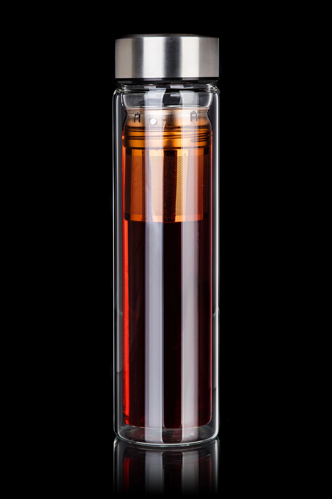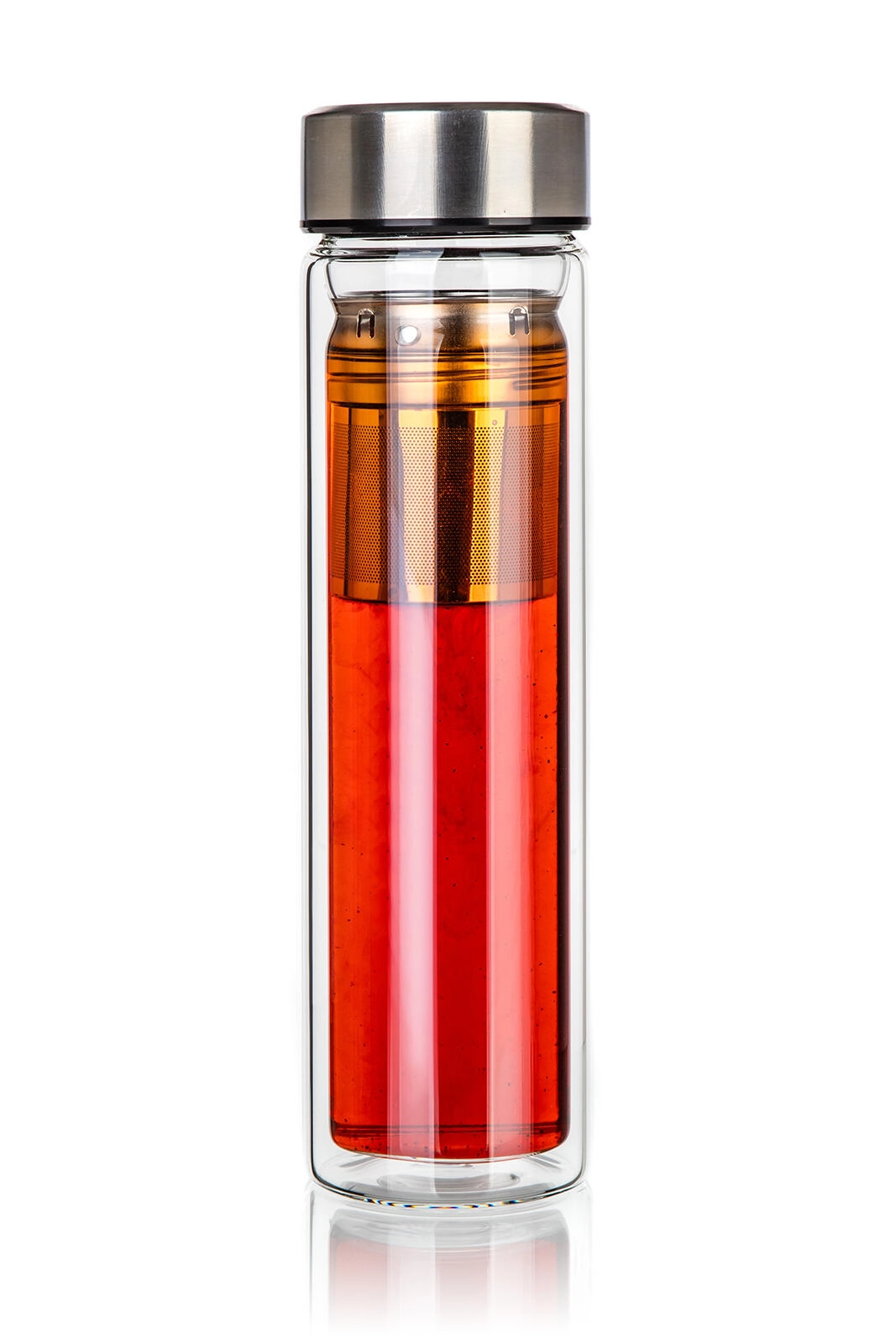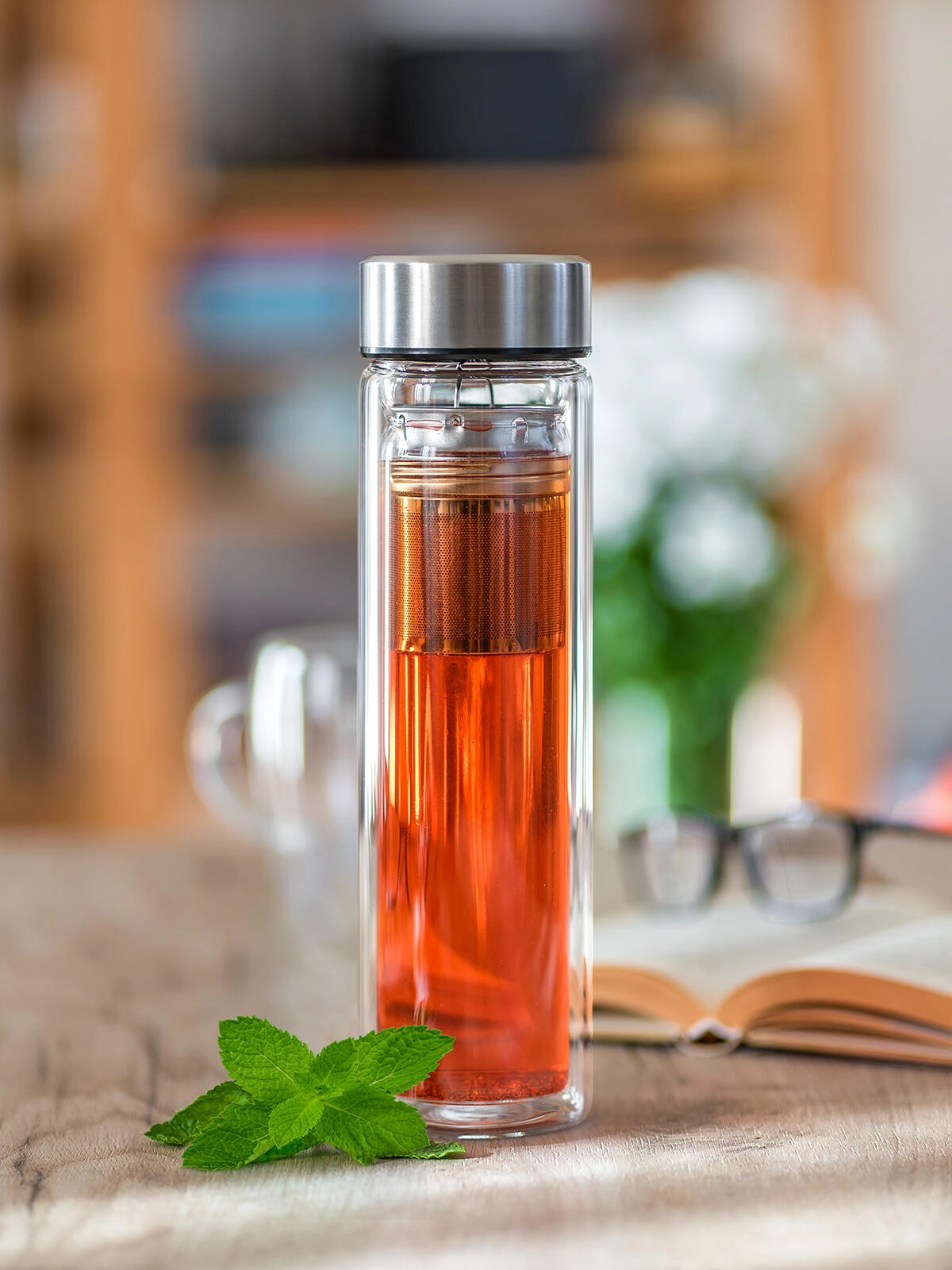 Integrirano nehrđajuće cjedilo omogućuje lako namakanje rasutog čaja, bilja ili pripremu voćnih infuzija izravno u boci.