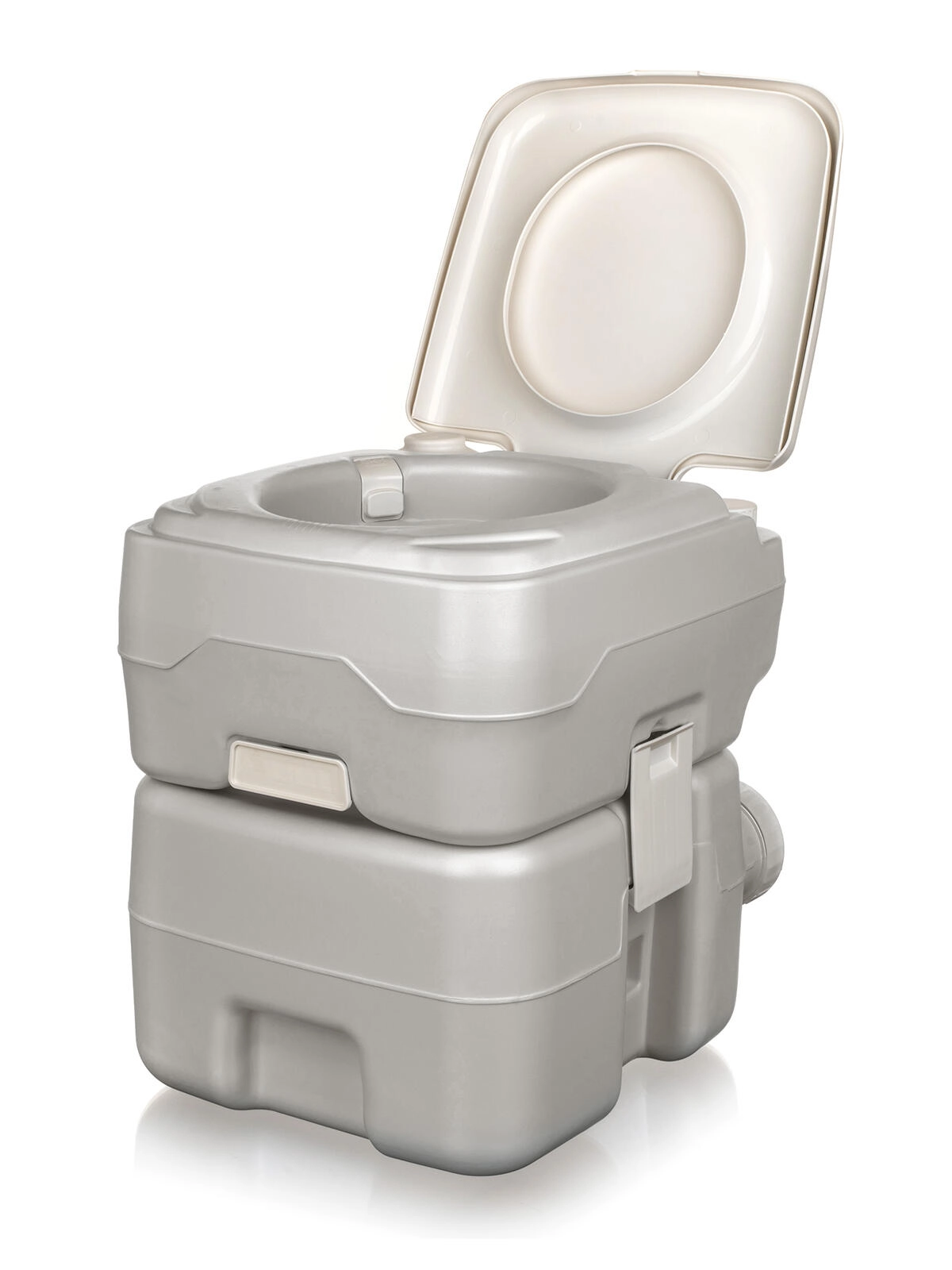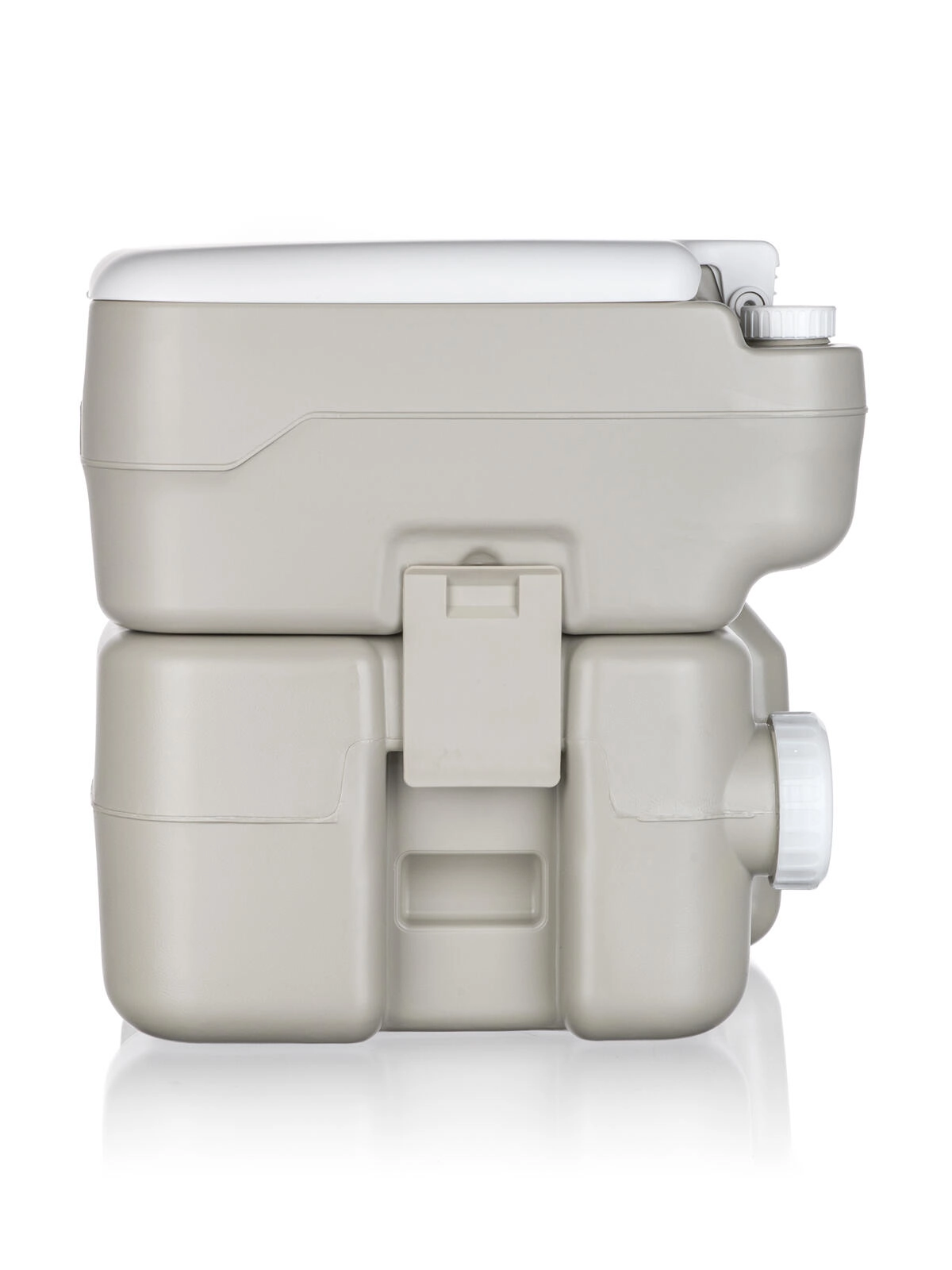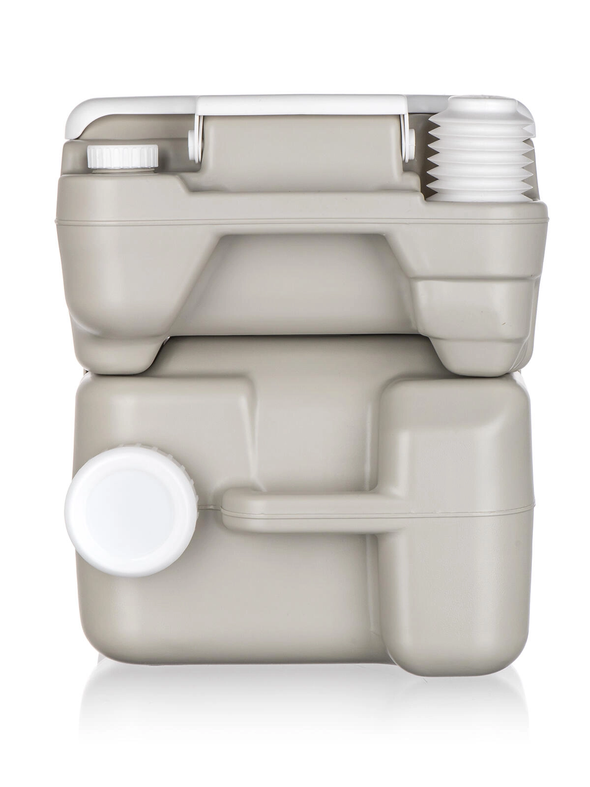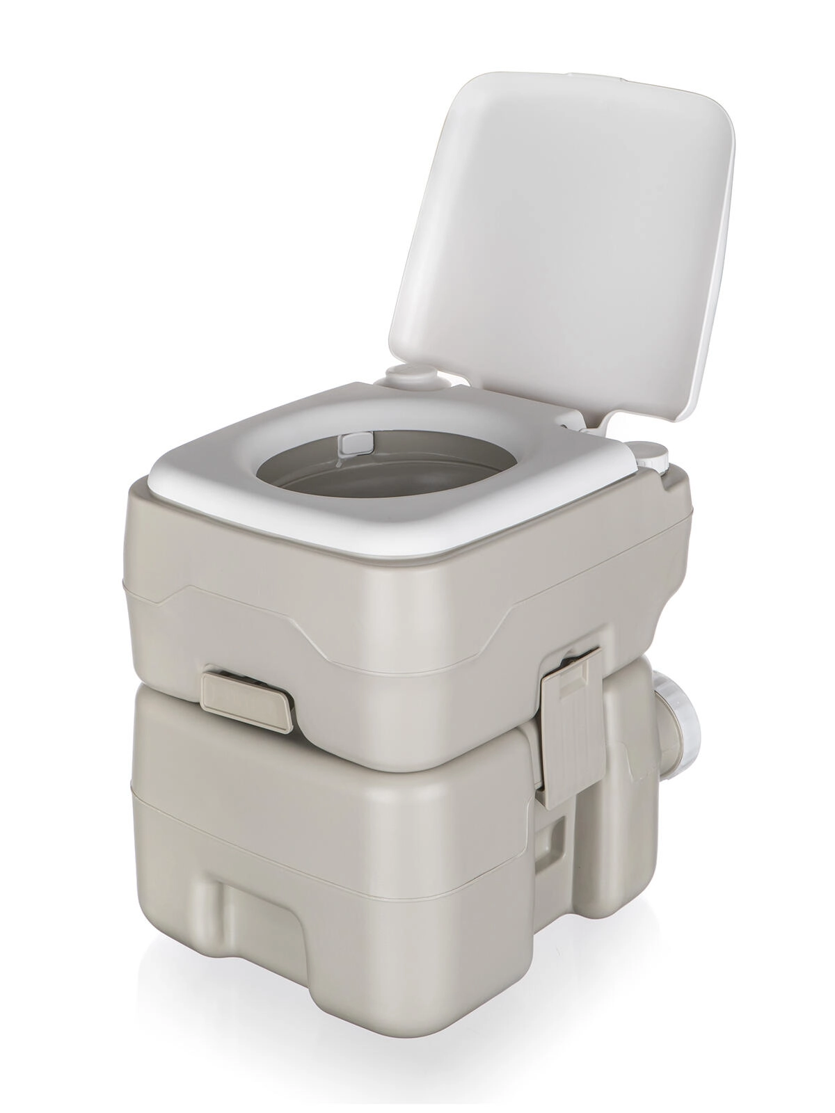 Praktični prijenosni kemijski WC za vikendicu, kamp, kamp-prikolicu i brod nudi prirodnu visinu sjedenja, velik spremnik otpadne vode od 20 l i spremnik čiste vode od 14 l. Zahvaljujući dvosmjernoj ispirnoj mlaznici i mjehovitom ispiranju osigurava pouzdano ispiranje. Izdržljiv HDPE materijal je kemijski otporan, bez mirisa i netoksičan, a nova zaobljena konstrukcija i ojačano dno povećavaju udobnost i otpornost pri vanjskoj upotrebi.