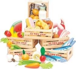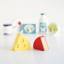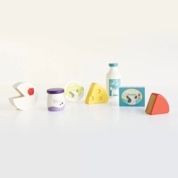 Ova drvena kutija s mliječnim proizvodima robne marke Le Toy Van idealna je za djecu koja vole igru trgovine ili kuhinje. Set sadrži bocu mlijeka, maslac, jogurt, vrhnje i tri vrste sira, svaki predmet je dizajniran da izgleda realno. Ove igračke nisu samo zabavne, već i edukativne, jer pomažu djeci razumjeti važnost uravnotežene prehrane.