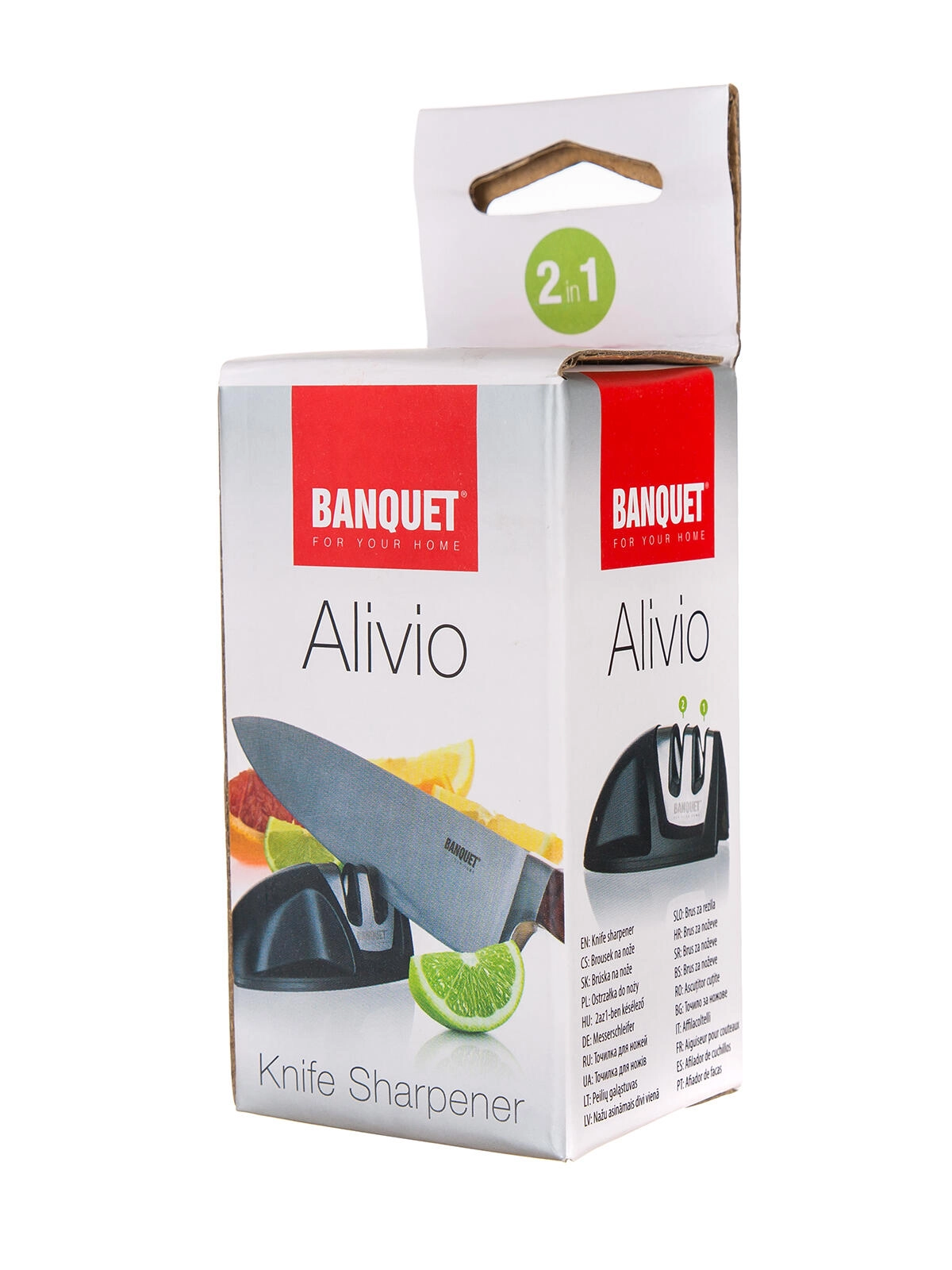 Kompaktni ručni brus za nože 2u1 Alivio održat će vaše kuhinjske nože u savršenom stanju. Nudi dvofazno oštrenje – volfram za brzo poravnavanje oštrice i keramiku za fino naoštravanje i poliranje. Zahvaljujući neklizajućoj bazi i ugodnoj soft touch površini, oštrenje je sigurno i udobno za dešnjake i ljevake.