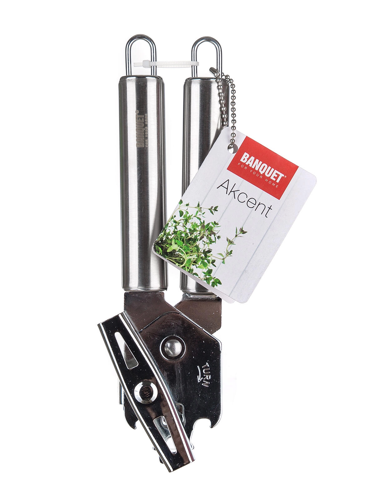 Praktični otvarač za konzerve AKCENT s klasičnim krilnim mehanizmom za brzo i udobno otvaranje. Izrađen je od kvalitetnog nehrđajućeg čelika, nudi dug vijek trajanja i zahvaljujući ušici za vješanje uvijek je pri ruci. Pogodan za profesionalnu i kućnu upotrebu.