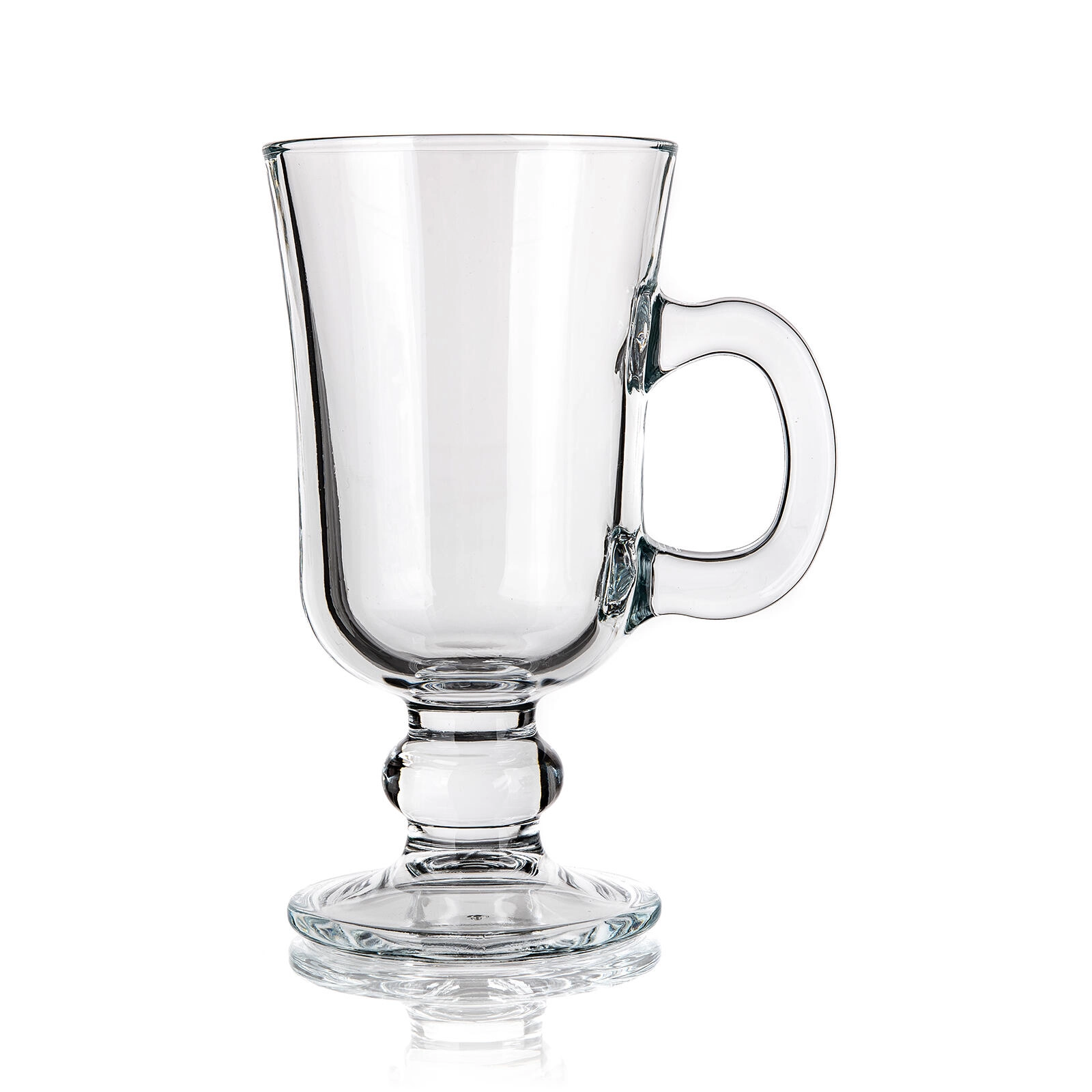 Priuštite si stilsko posluživanje vrućih i hladnih napitaka. Čaše za irish coffee s praktičnom ručkom i stabilnim stalkom izrađene su od prozirnog stakla koje ističe boje i slojeve lattea, kakaa ili čaja. Zahvaljujući udobnoj ručki odlično leže u ruci i sigurno se prenose.