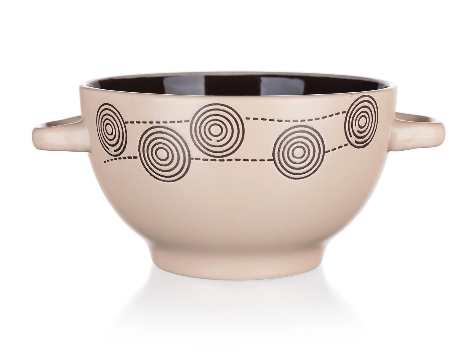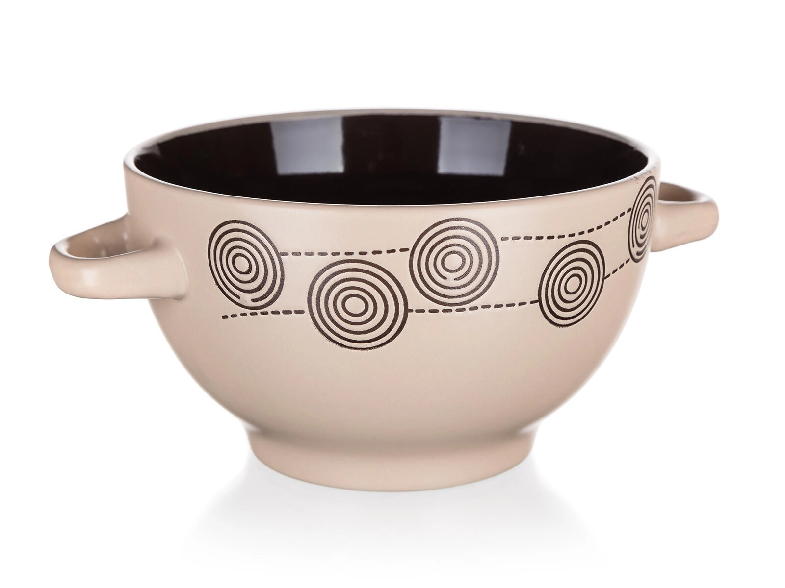 Elegantna keramička zdjelica s uzorkom Spirala u krem boji idealna je za svakodnevnu upotrebu. Nudi volumen od 660 ml, udobne ručke i jednostavno održavanje – prikladna je za mikrovalnu pećnicu i perilicu posuđa. Stilski dizajn istaknut će se u svakoj kuhinji, a zahvaljujući praktičnim dimenzijama poslužit će za juhe, žitarice i priloge.