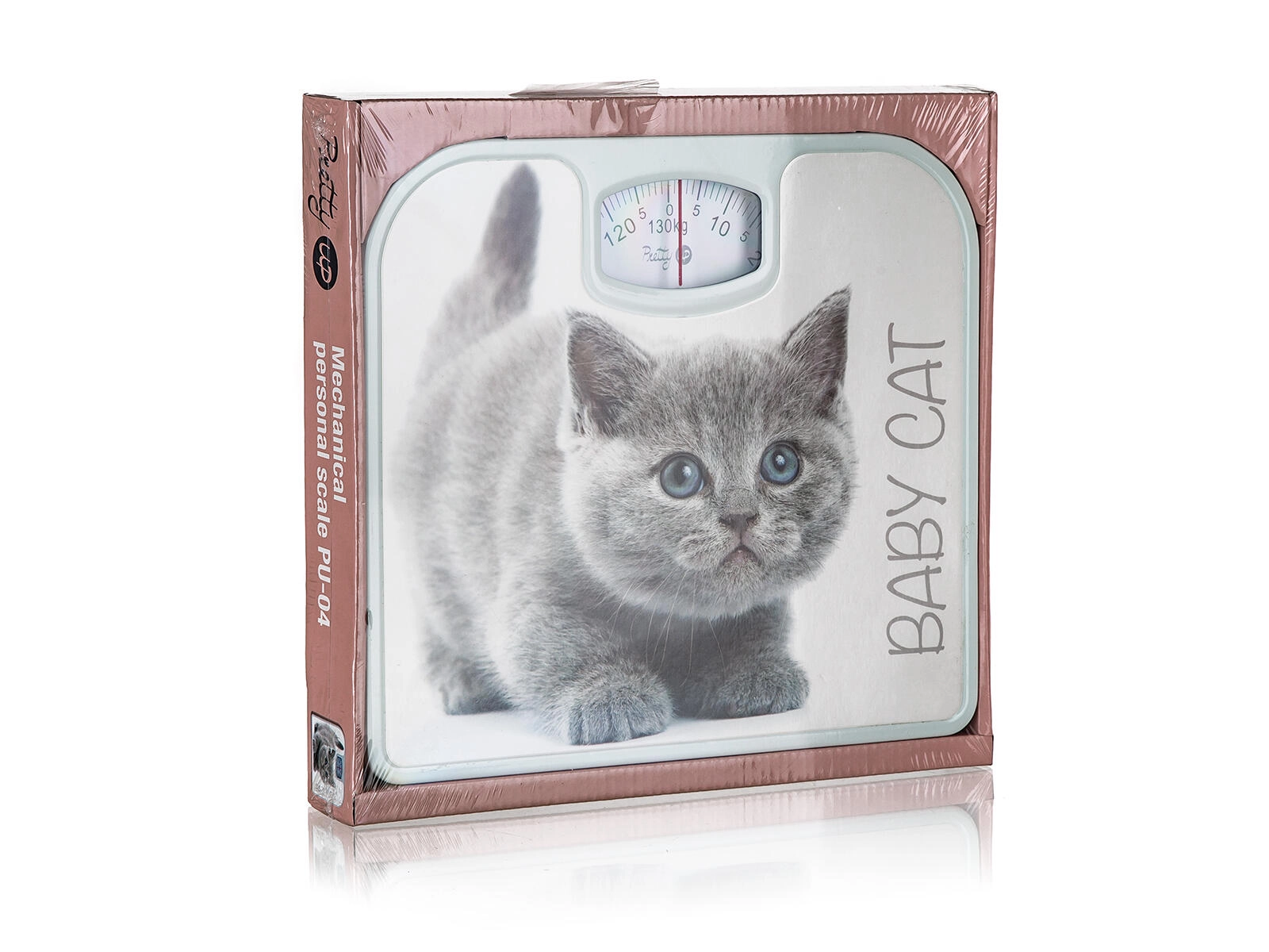 Stilna osobna vaga s ljupkim motivom mačića ističe se klasičnim mehaničkim izvedbom i kompaktnim dimenzijama. Nudi maksimalno opterećenje 130 kg, čitljivu skalu i kotačić za lako poništavanje na nulu. Zahvaljujući metalnoj konstrukciji izdržljiva je i idealna za svako kućanstvo.