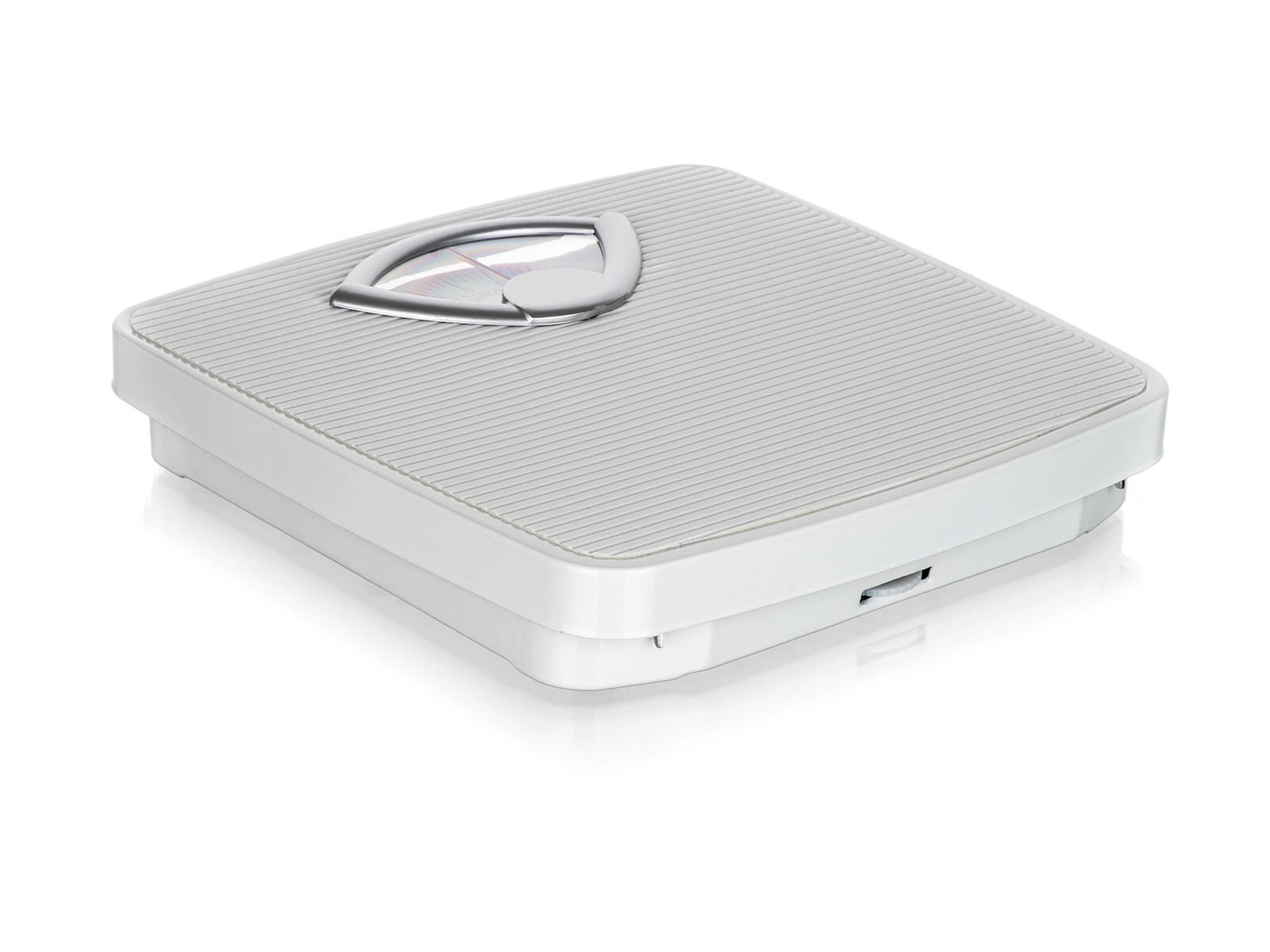 Kompaktne dimenzije 26,5 × 26,5 cm štede prostor i omogućuju jednostavno odlaganje. Praktični kotačić za podešavanje nule (tara) jamči precizno mjerenje prije svake upotrebe. Čvrsta izvedba u kombinaciji plastike i metalnih elemenata izdržljiva je za svakodnevnu uporabu.