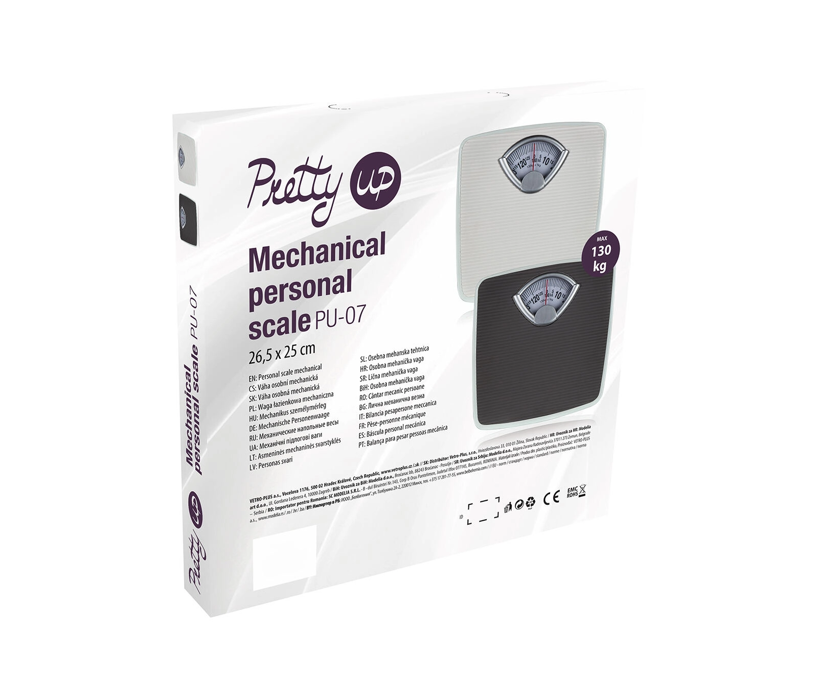 Ova mehanička osobna vaga PU-07 u bijeloj boji praktičan je dodatak svakom kućanstvu. Zahvaljujući analognom pokazivaču s crvenom kazaljkom brzo i pregledno saznat ćete svoju težinu, i to bez potrebe za zamjenom baterija. Protuklizna struktura gazišne površine osigurava stabilnost pri vaganju.